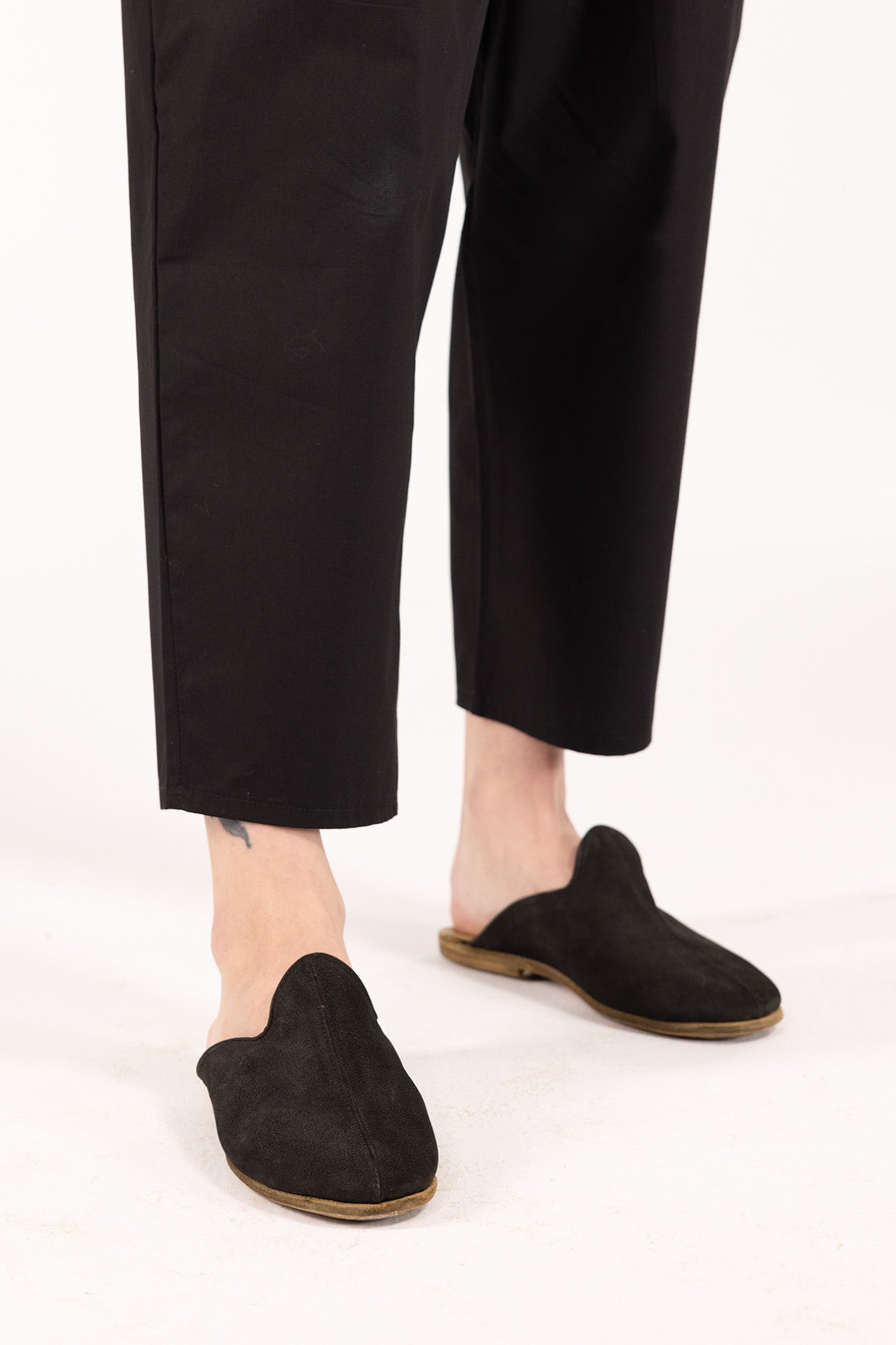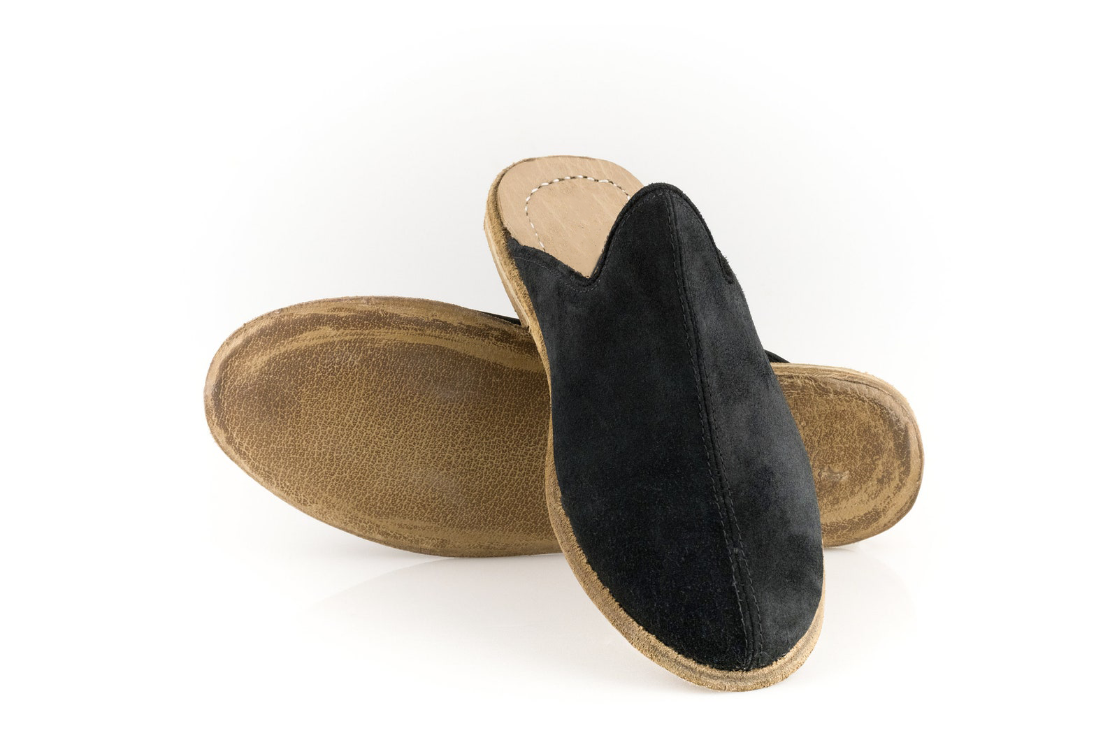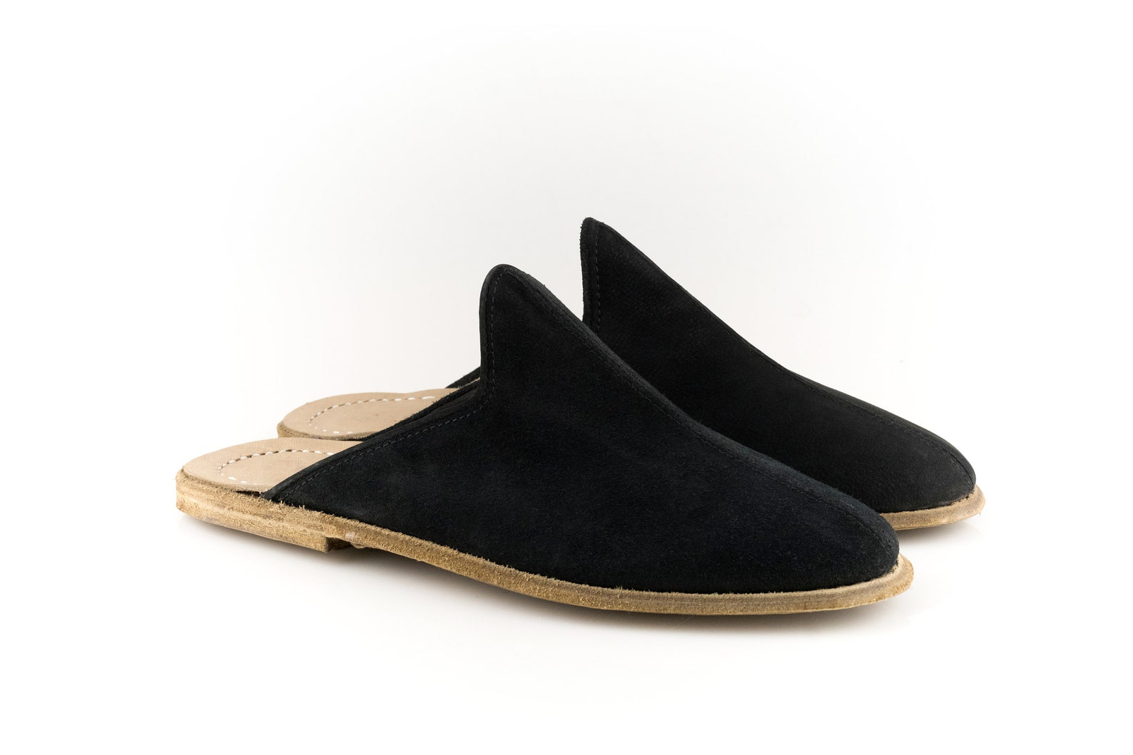 Gaziantep'te ustaların %100 el emeğiyle ürettiği siyah süet terlikler. Doğal deri astar ve kendine özgü tasarımıyla hem modern hem de geleneksel bir tarza sahip.