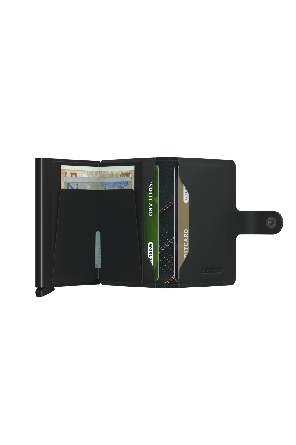 Secrid Miniwallet, çok fonksiyonlu güvenli bir cüzdandır. Cardprotector'daki kartlara ek olarak iç kısım birkaç kart, kağıt para, makbuz, kartvizit ve biraz bozuk para için alan sunar. Miniwallet çıtçıtlı kapatması nedeniyle taşıması kolaydır. Kabartmalı 4 kart veya 6 düz kart kapasitesi vardır.