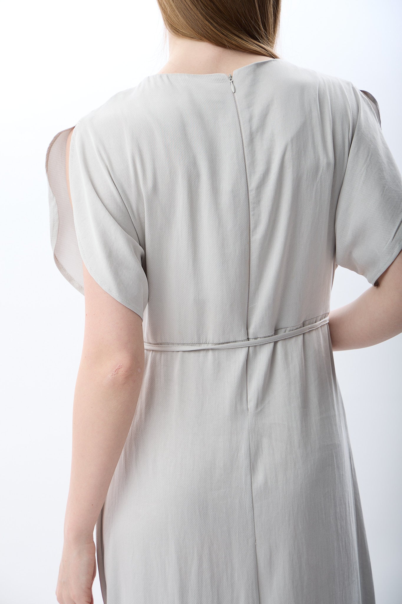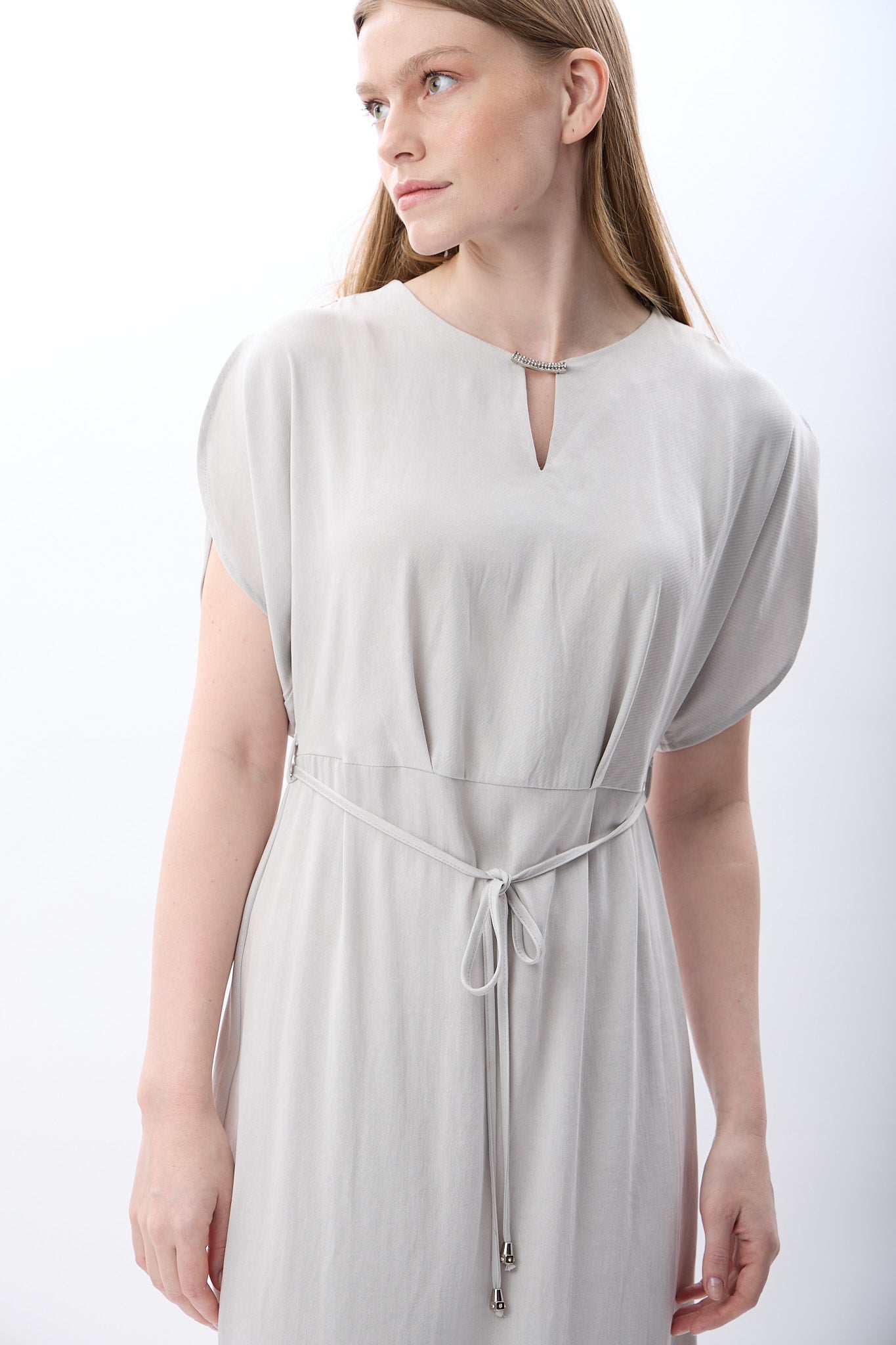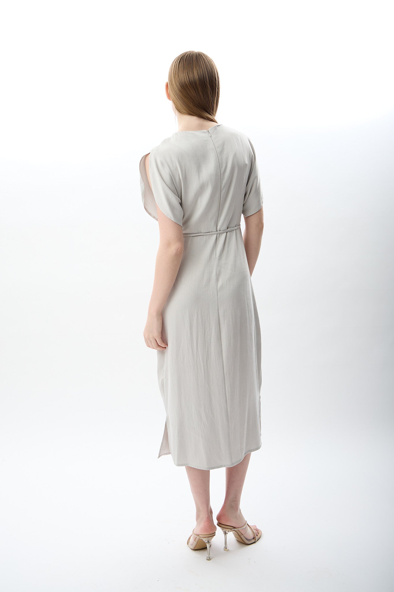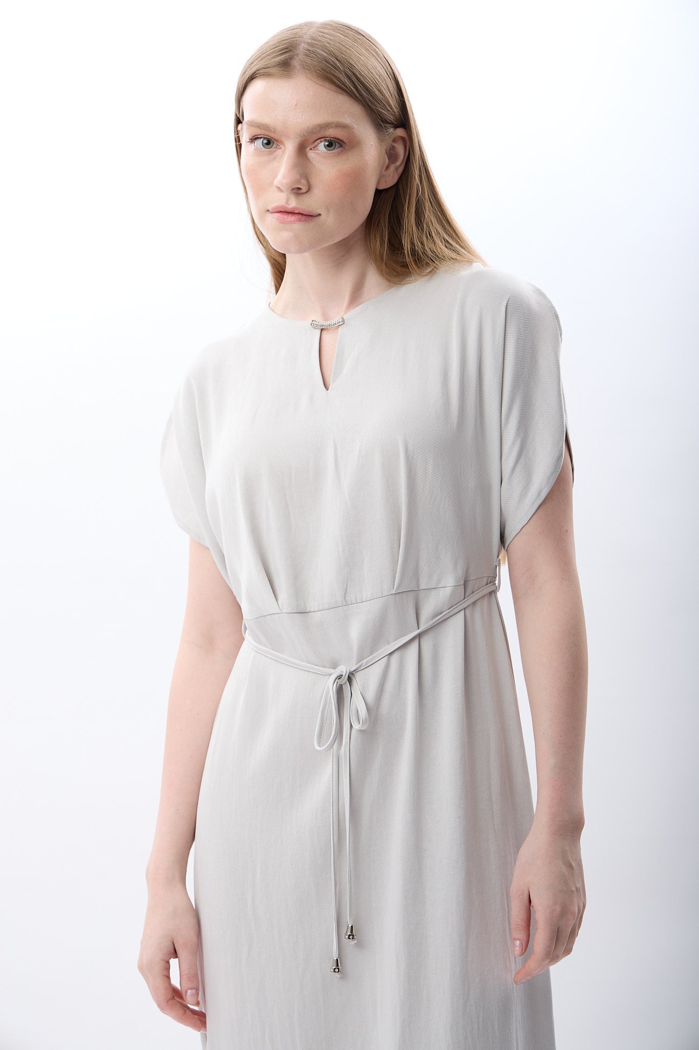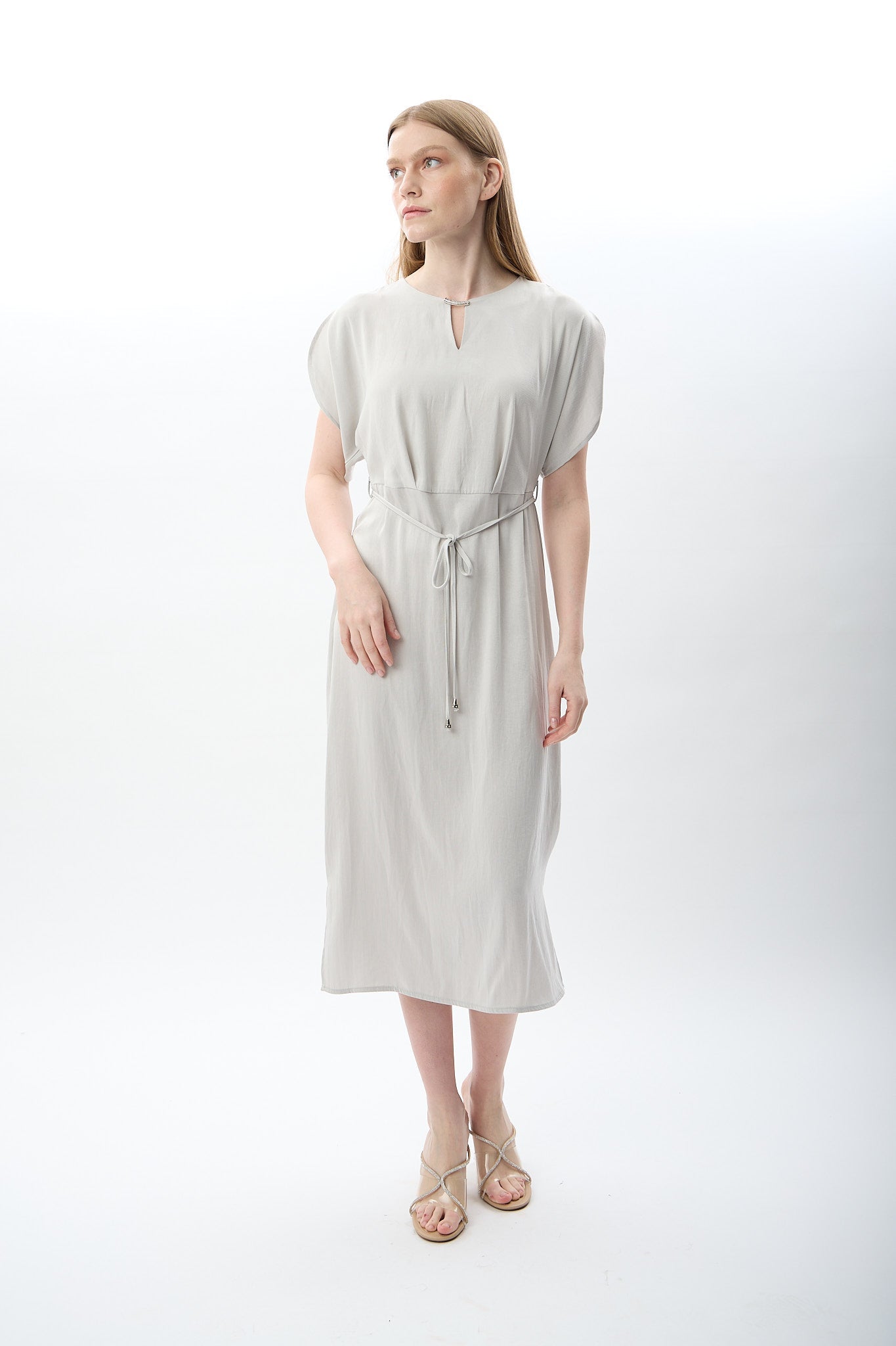 Belden Bağlamalı Yırtmaçlı Elbise (Gri)