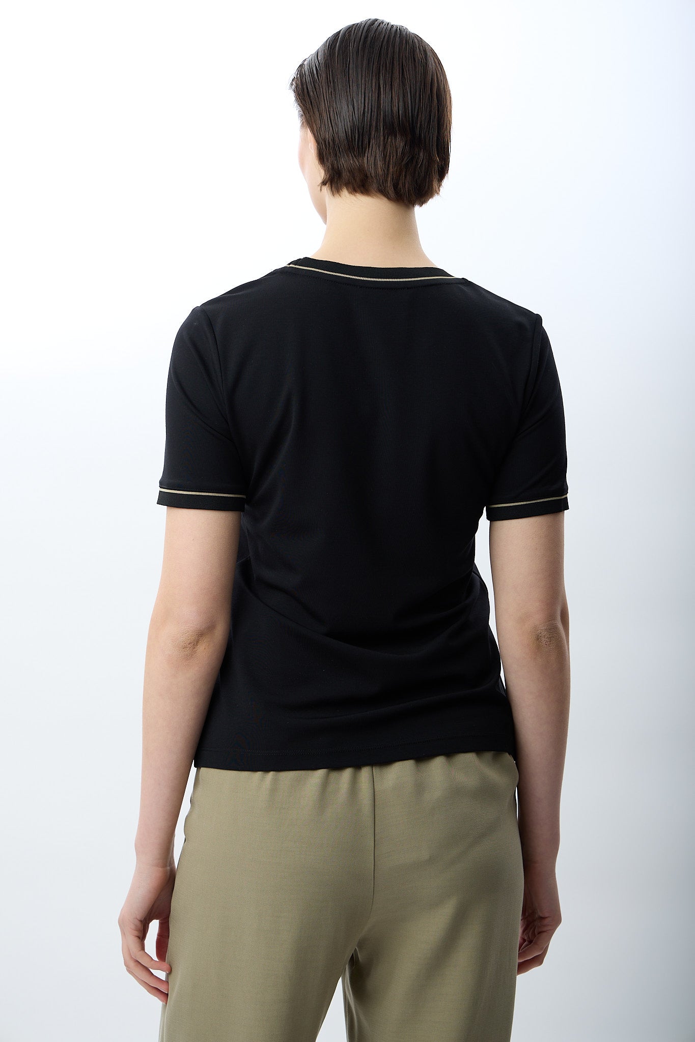 Günlük kombinlerinizi tamamlayacak, dikkat çekici ve konforlu bir taş detaylı tişört arıyorsanız bu model tam size göre!