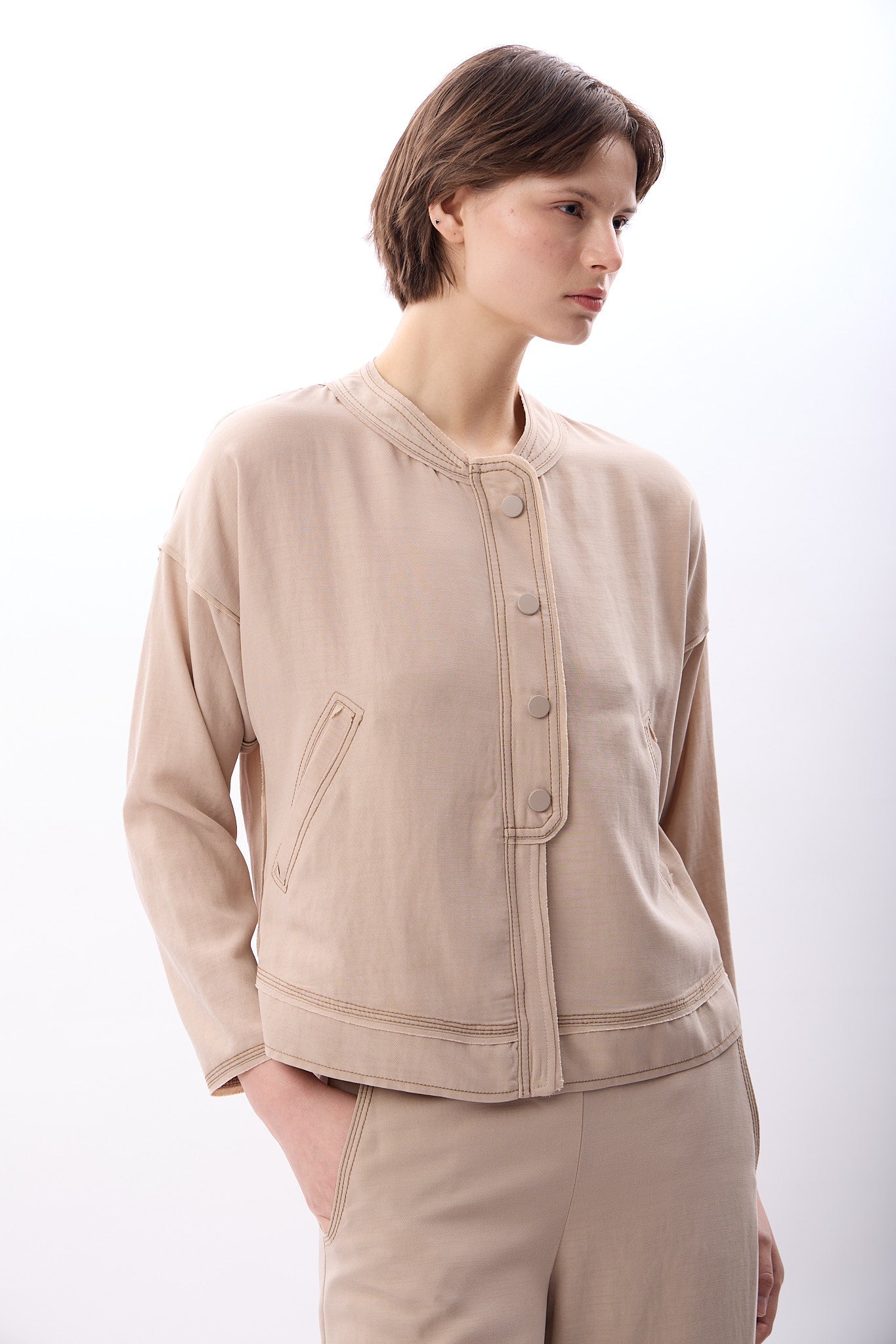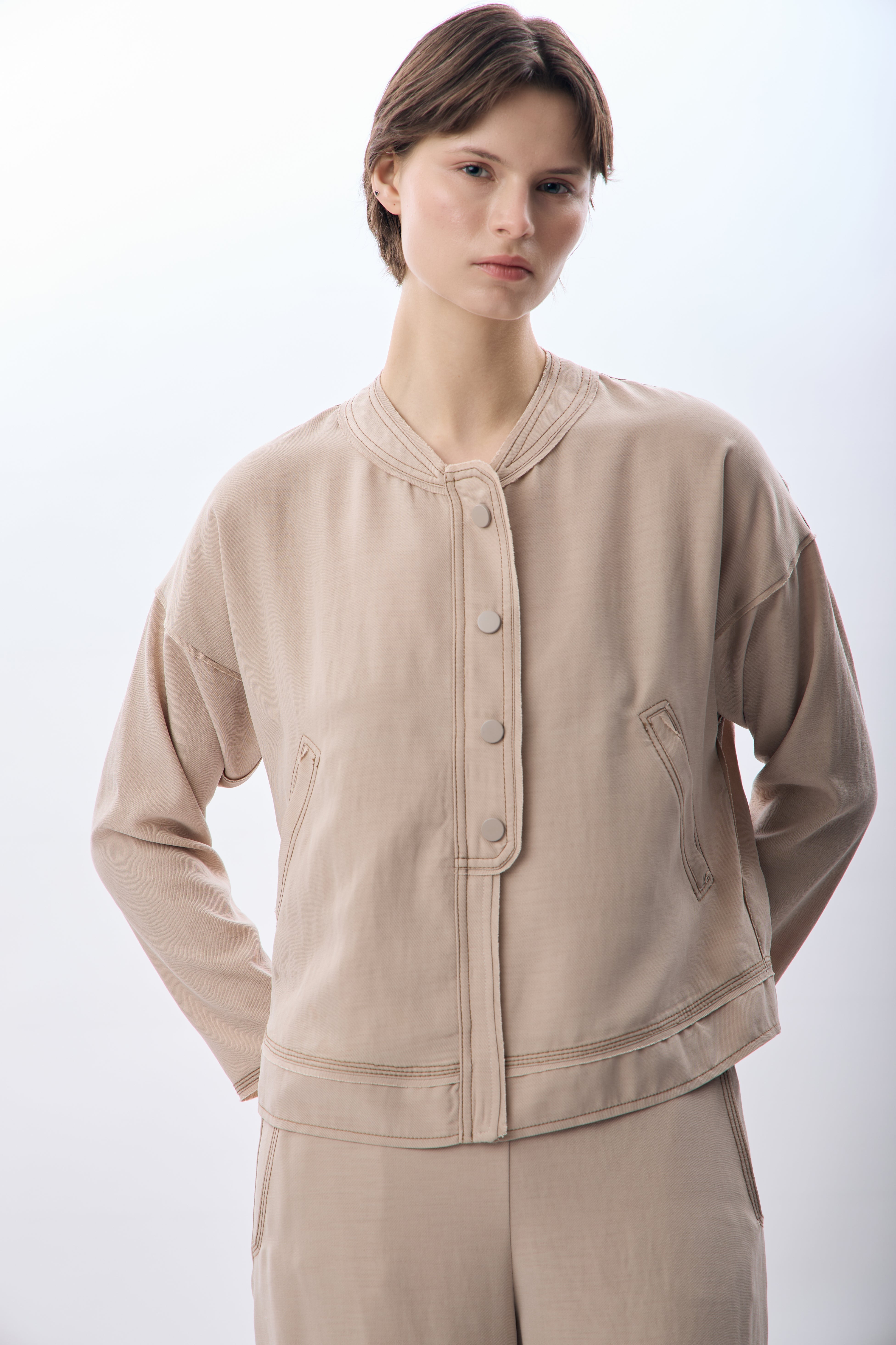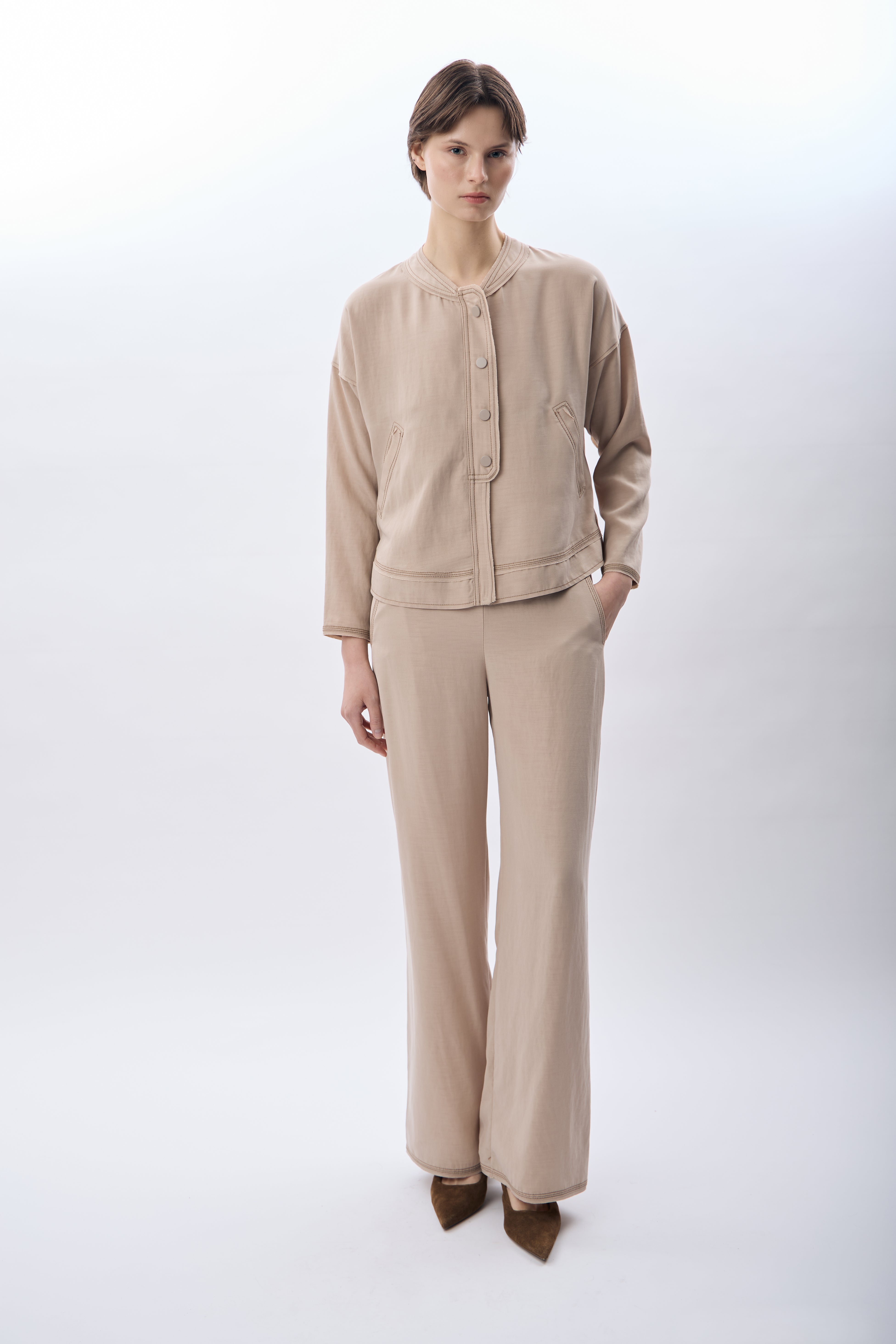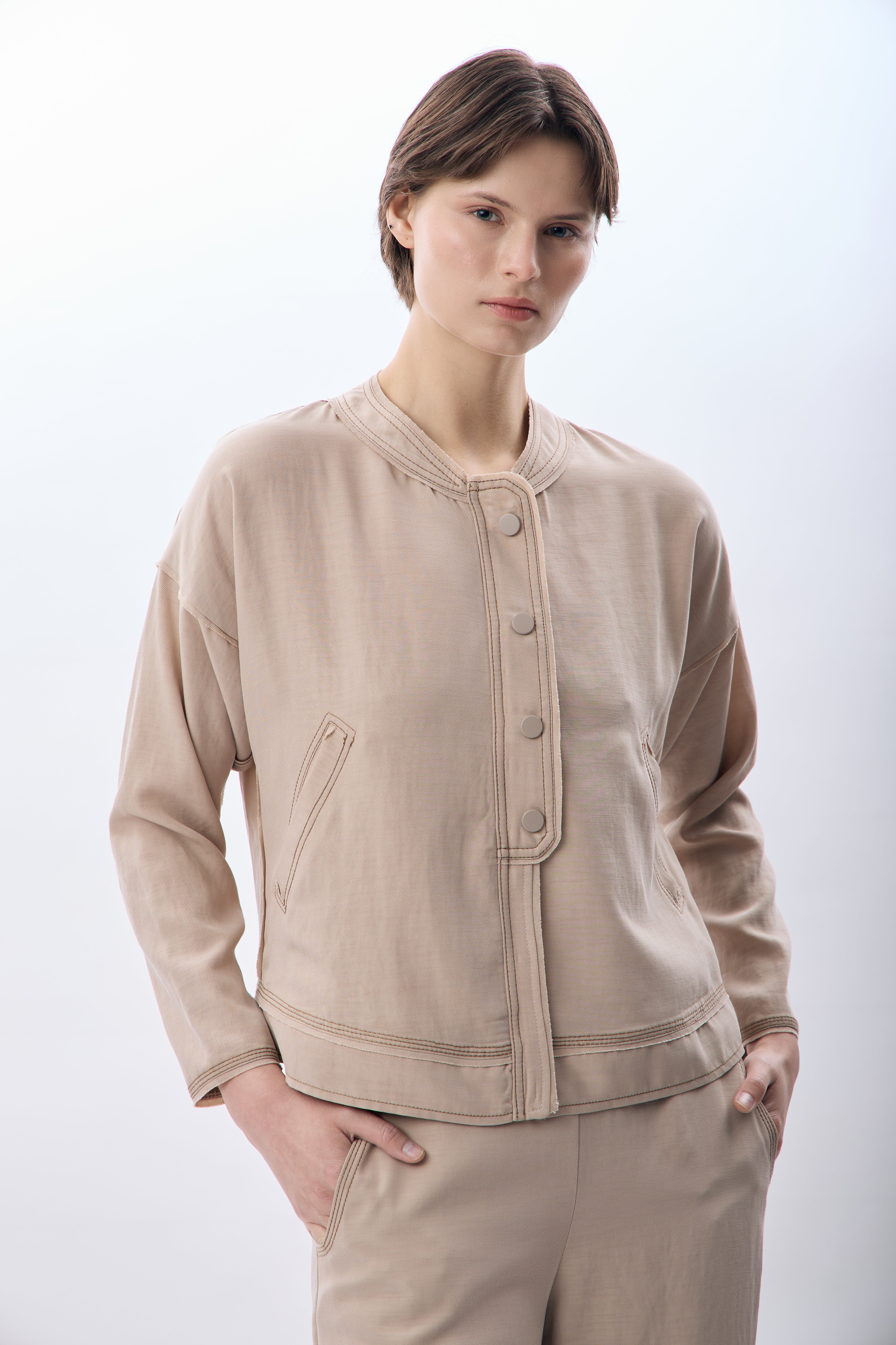 Hakim Yaka Geniş Kalıp Ceket – %64 Tensel, %36 PolyesterRahatlığı ve modern şıklığı bir arada sunan bu hakim yaka ceket, oversize kalıbıyla günümüz şehir modasına güçlü bir yorum katıyor. %64 tensel ve %36 polyester karışımı kumaşı sayesinde hem yumuşak hem de dökümlü bir yapıya sahiptir. Tensel içeriği sayesinde nefes alabilirliği yüksek olan ceket, tüm gün konfor sağlar. Düşük omuz kesimi ve çapraz cep detayları ile tasarımda hareketlilik sağlanırken, geniş kalıbı sayesinde rahat bir siluet sunar. Ofis şıklığından günlük stile kadar geniş bir kullanım alanı sunar.Kumaş: %64 Tensel, %36 PolyesterModel: Hakim yaka, düşük omuz, çapraz cepli, geniş kalıpManken Ölçüleri: 170 cm / 50 kg – Numune beden: SNot: Profesyonel çekim ve yüksek ışık nedeniyle ürün renginde ton farklılıkları olabilir.Beden Ölçü TablosuBeden Karşılık Göğüs (cm) Bel (cm) Basen (cm)34 XS 82 64 8836 S 86 68 9238 M 90 72 9640 L 94 76 10042 XL 98 80 10444 XXL 104 86 110