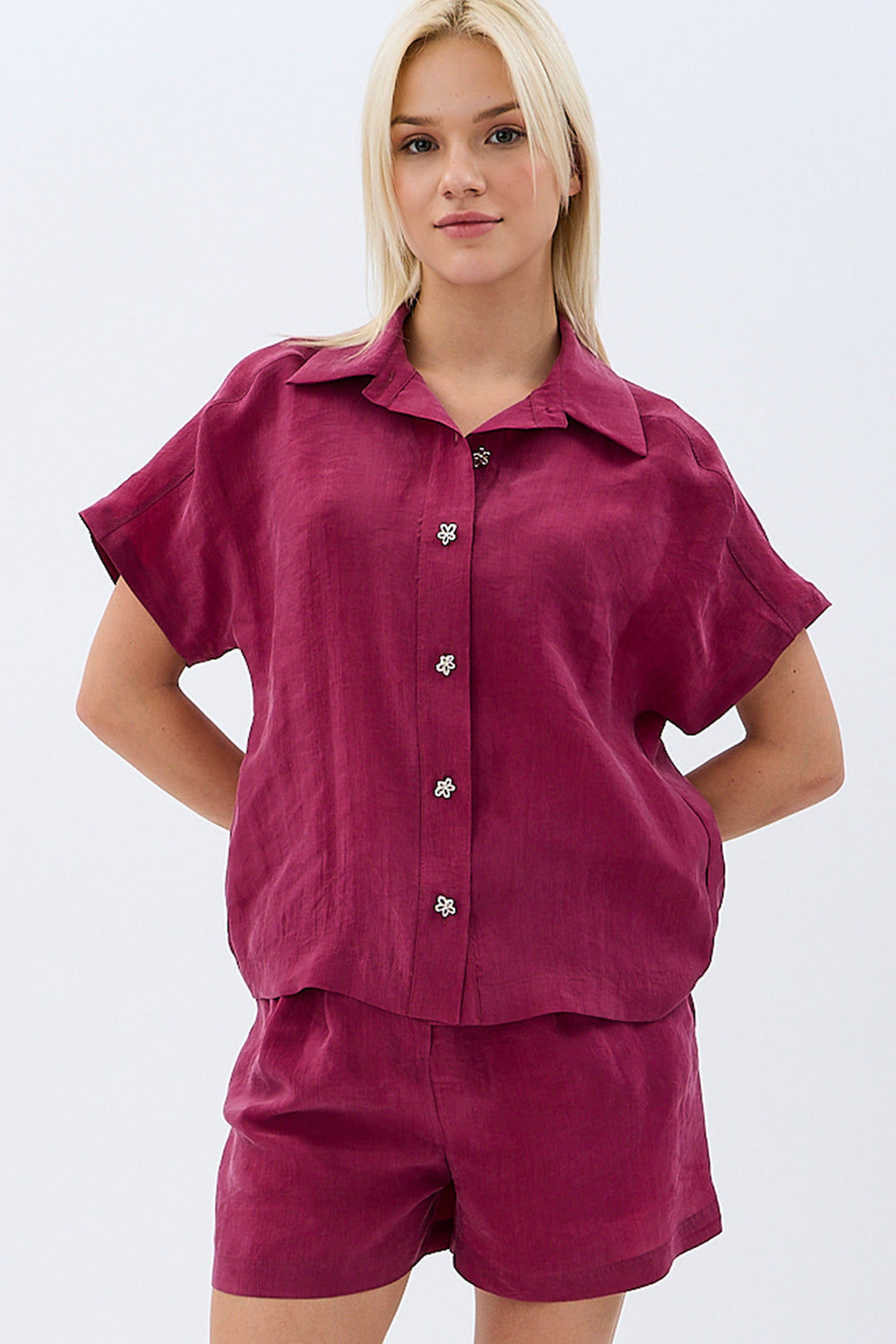 Kısa Kollu Düz Kesim Gömlek – %90 Tencel, %10 Polyester