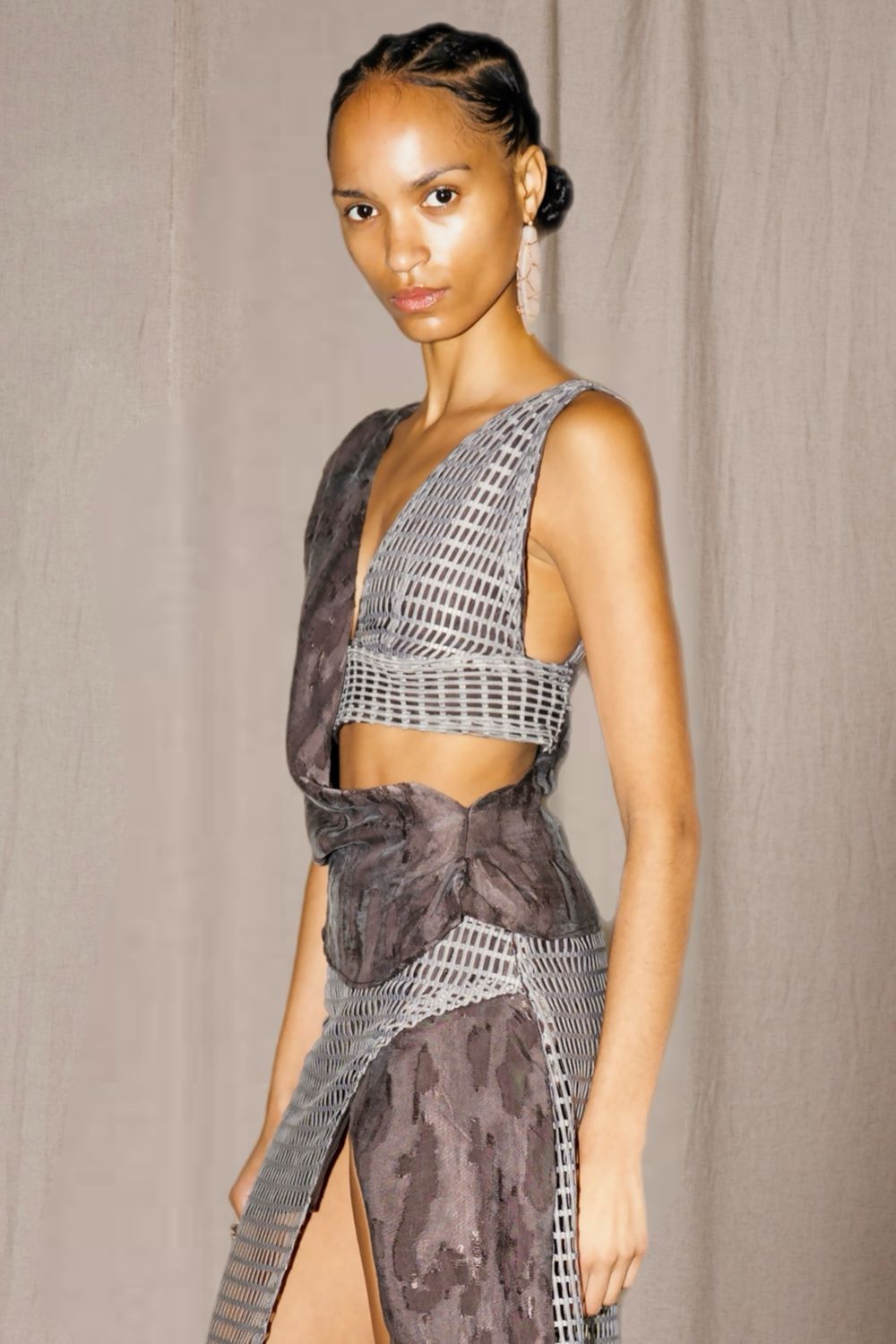 Minimal bir çizgide maksimum etki. Tek omuz kesimiyle bedenin zarif hatlarını ortaya çıkarırken, bel hizasında bıraktığı hafif açıklıkla kontrollü bir cesaret sunar. Asimetrik formu, asil ve cool bir duruş yaratır; gündüz sade şıklığın, gece asi zarafetin tamamlayıcısı olur. Kendine güvenen bir siluetin sessiz imzası.