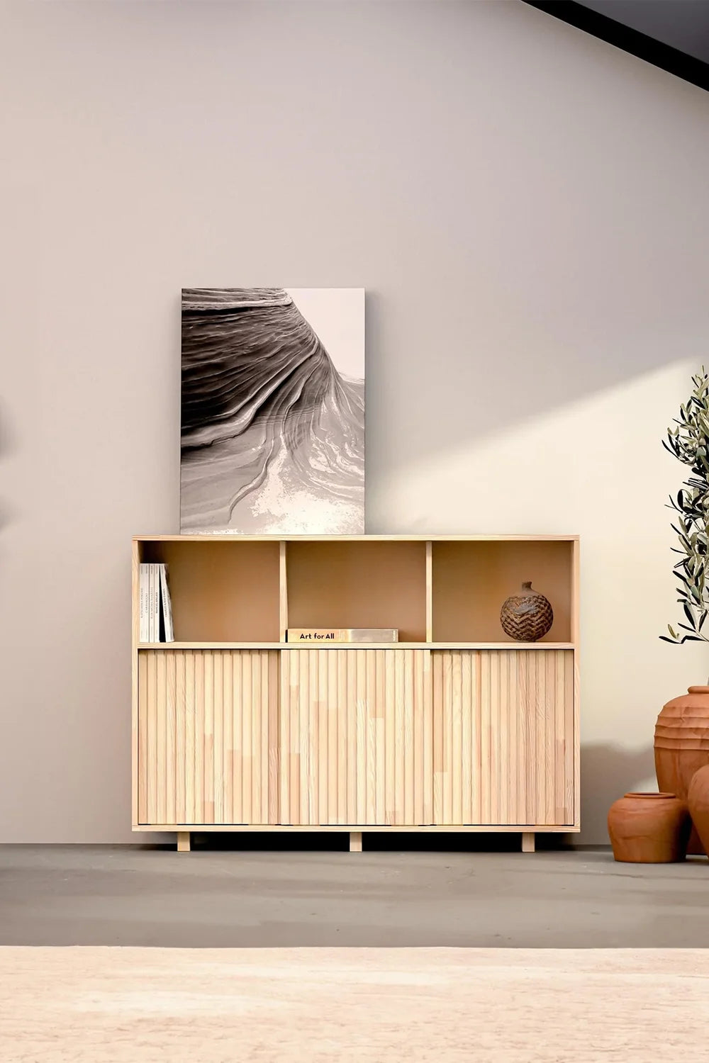 İskandinav tasarımının zarif çizgileriyle şekillenen bu şık büfe, estetik ve fonksiyonu mükemmel bir şekilde birleştiriyor. İsterseniz salonda bir büfe, yüksek bir tv ünitesi yada yatak odanızda şık bir konsol olarak kullanılabilir. Mimarlar tarafından tasarlanan bu parça, doğal ahşabın sıcak dokusu ve el işçiliğiyle öne çıkan tasarımıyla modern İskandinav tarzını evinize taşıyacak.