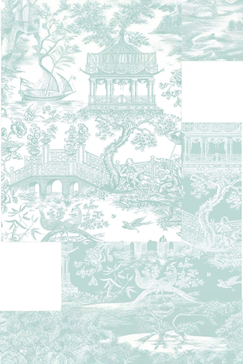 ChInoiserie Toile Reversible Gift Wrapping Paper in Robin's Egg 30'' X 8' Roll