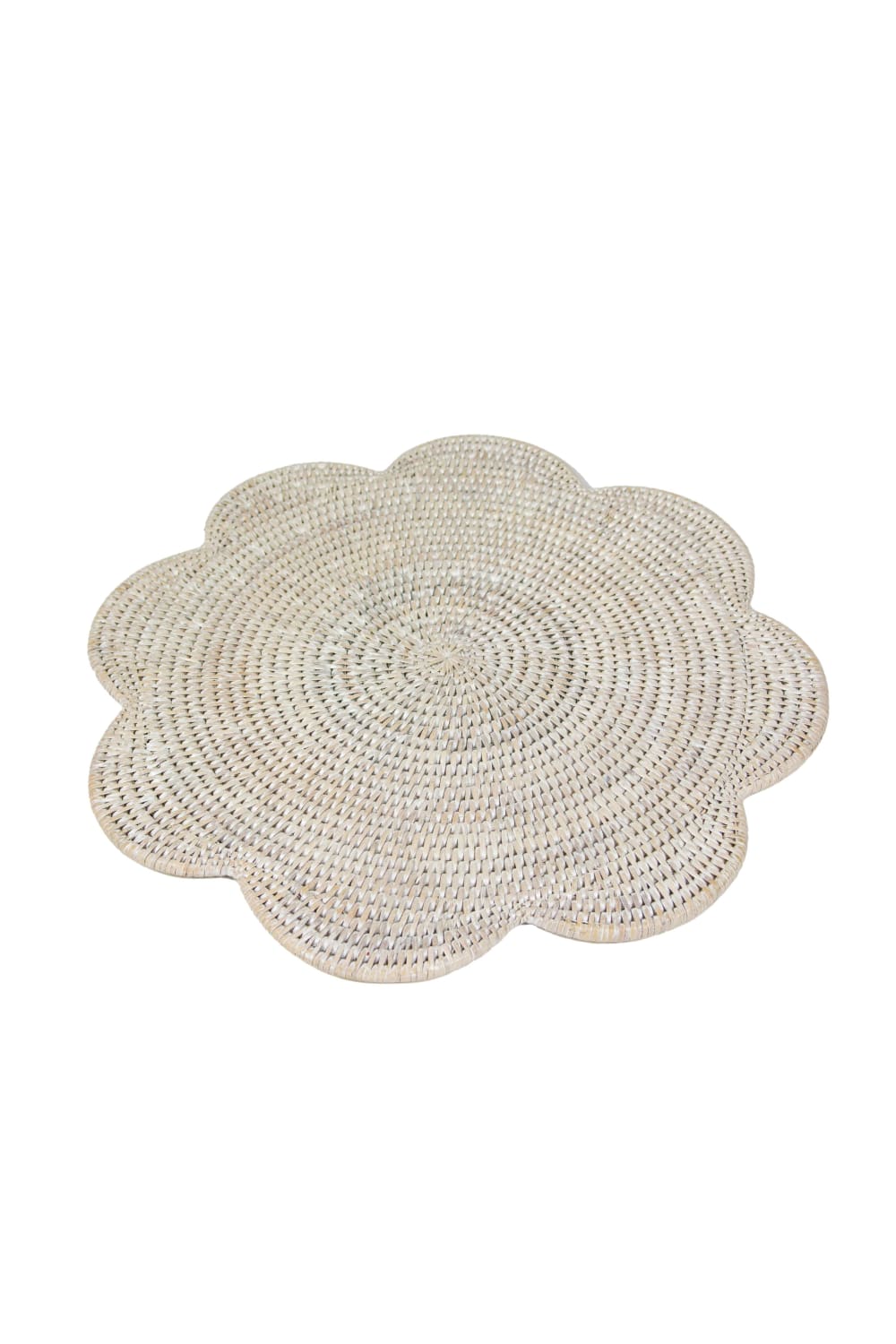 Rattan Scalloped Round Placemat In Cream 1 Placemat