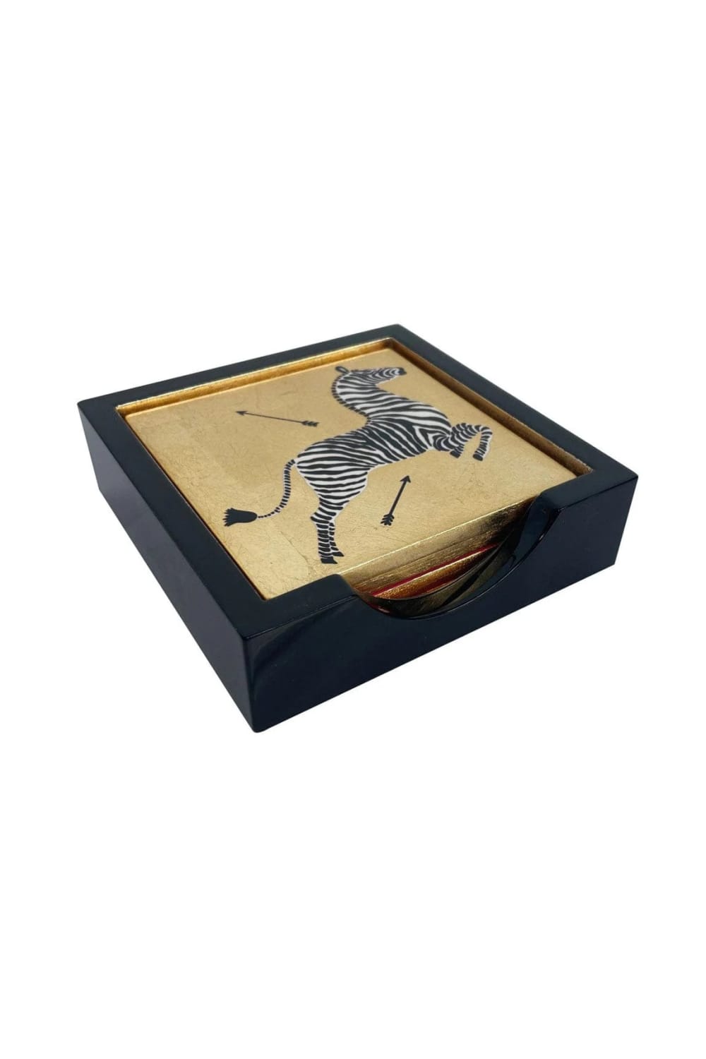 Zebras Gold Lacquer Coasters - Set Of 4 Coasters In Holder