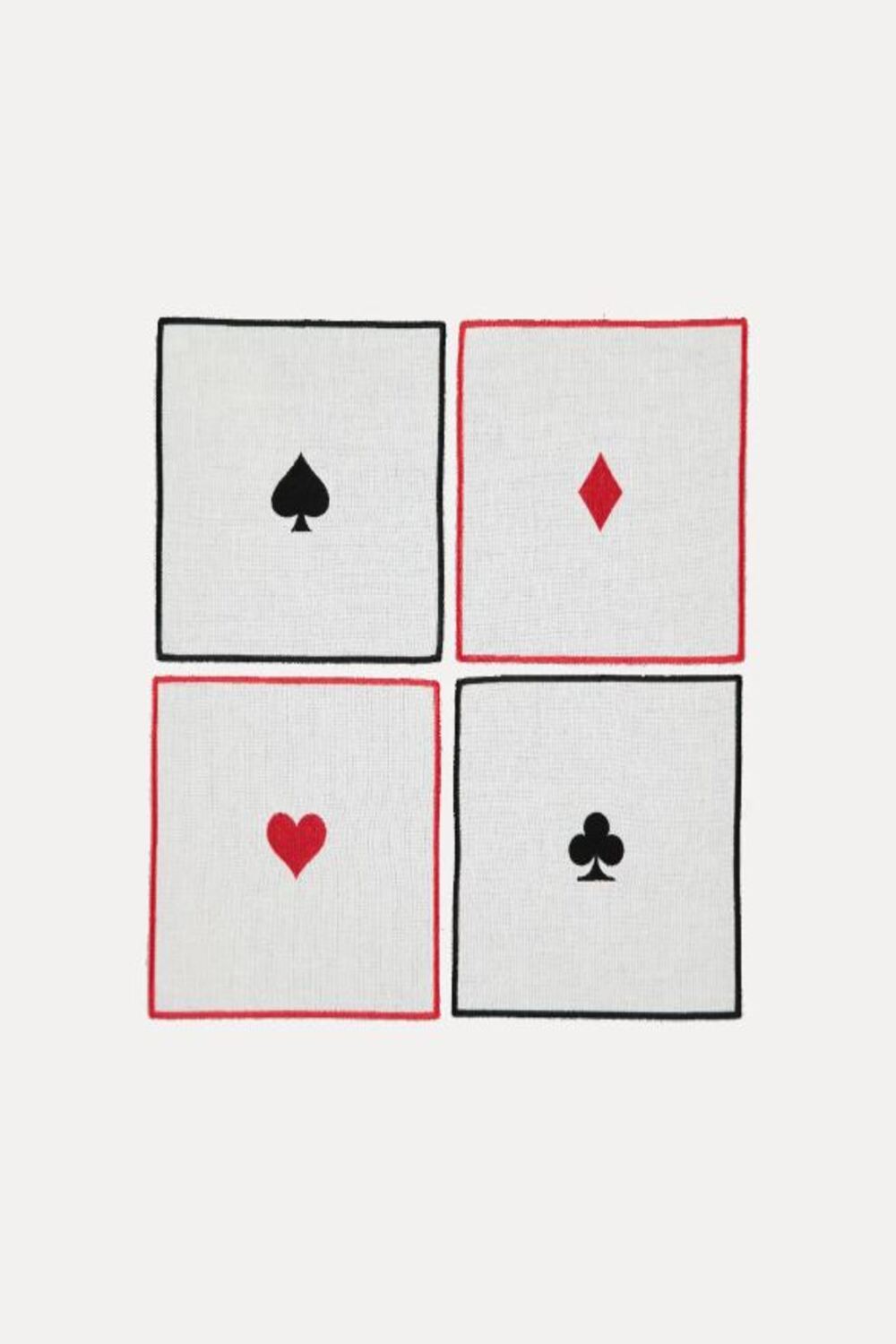 Mariaida Home İskambil Kağıdı Nakışlı Kokteyl Peçete 4'lü Set