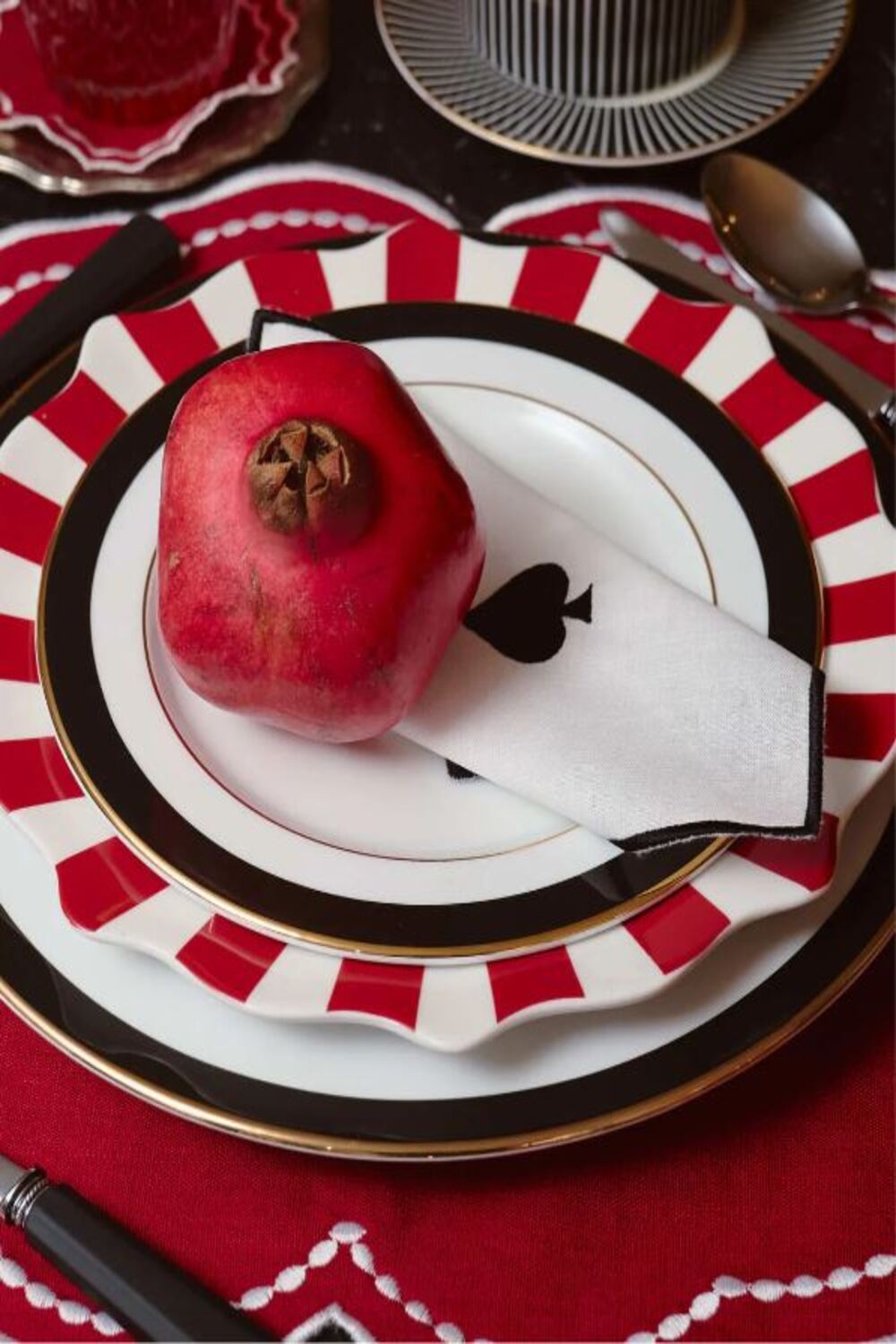 El işçiliği nakış dokusu, keskin hatlara sahip simgeler ve ince konturlu bordür, bu seti klasik kokteyl peçetelerinden ayırıyor. Hem modern hem de eğlenceli bir dokunuş arayanlar için ideal.