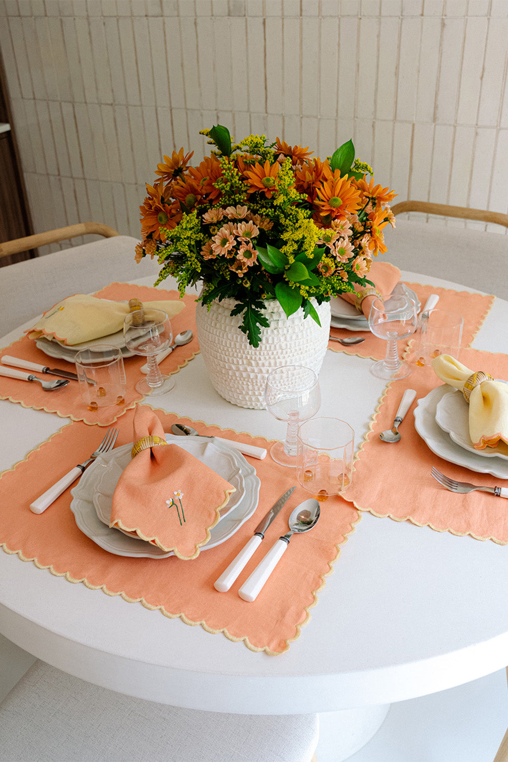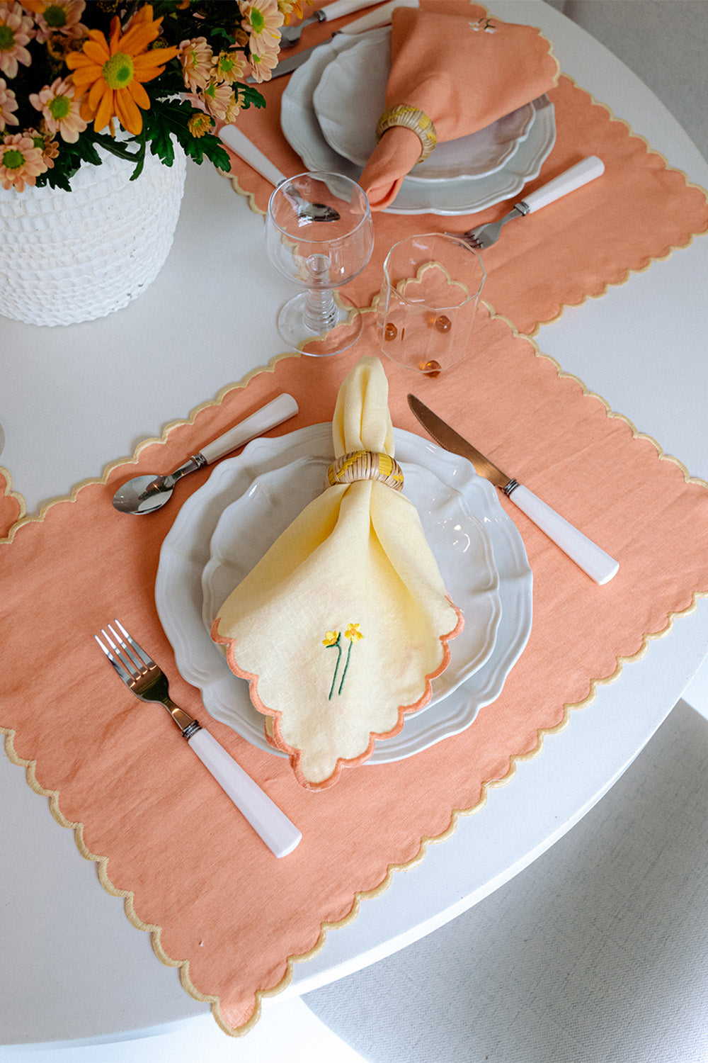 İster açık hava kahvaltılarında ister arkadaş buluşmalarında… Bu set, masanızı sade ama etkileyici bir şıklıkla donatır. Keten ve pamuk karışımı kumaşı sayesinde doğallığı, konforla buluşturur.