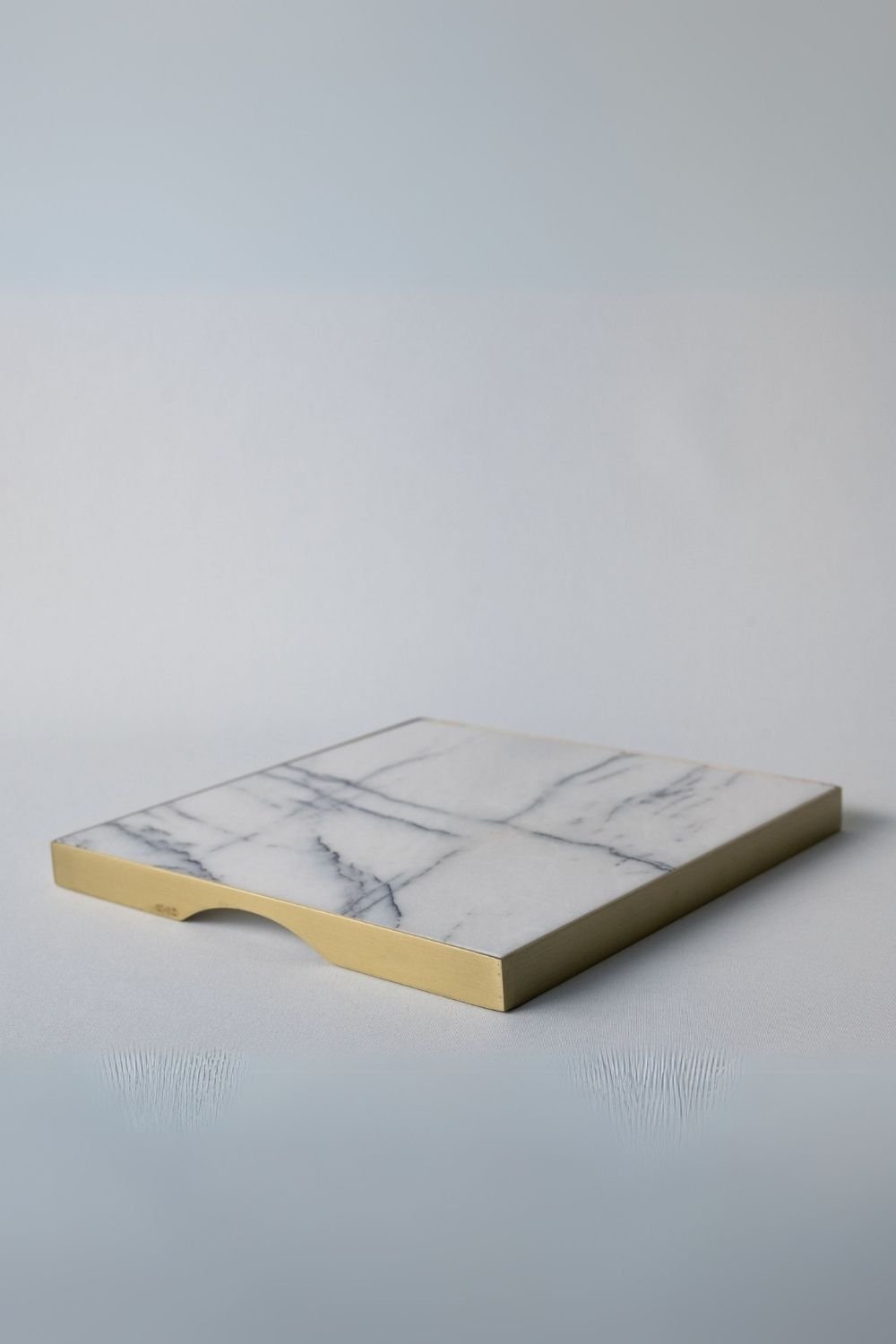 Ham pirinç, ısı ve neme maruz kaldığında okside olabilen bakır ve çinko gibi ham metaller içeren bir malzemedir. Bu, organik yaşlanma sürecinin bir parçasıdır ve bir kusur olarak addedilemez. Her pirinç çerçeve ve mermer el yapımıdır, bu nedenle kaplama, doku damar ve boyutlandırmada küçük farklılıklar gösterebilir.