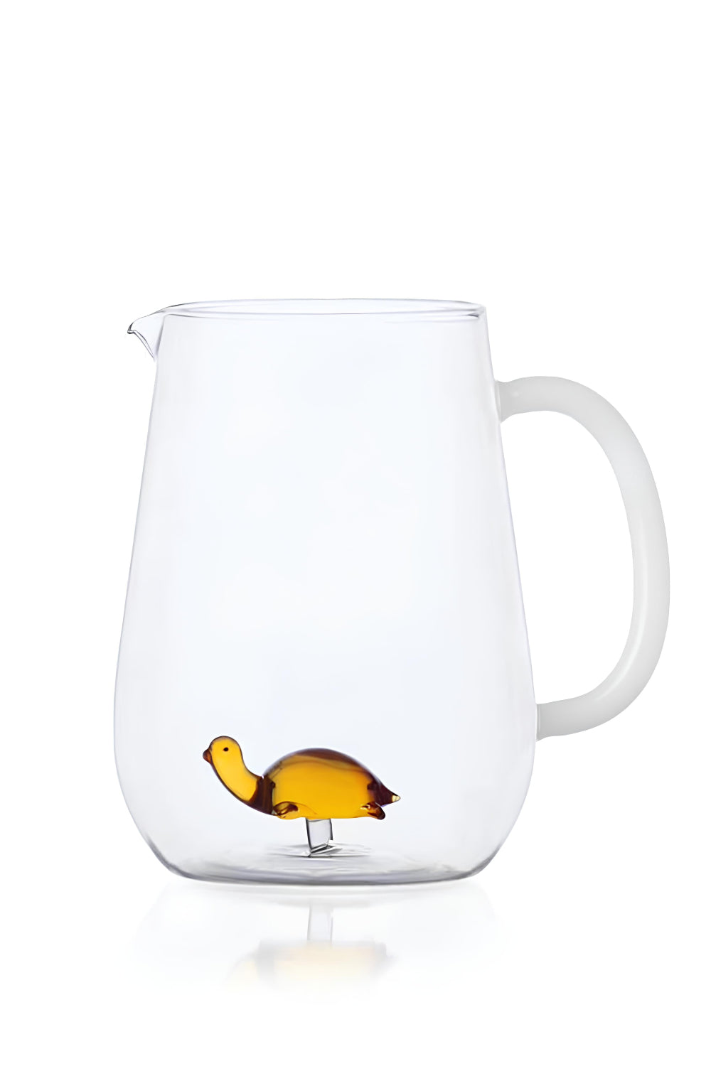 Animal farm koleksiyonundan kaplumbağa figürlü cam sürahi.