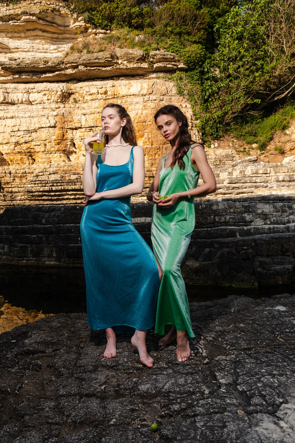 Model's measurements: Height 172cm, Chest 84cm, Waist 63cm, Hip 90cm. (Right Model / Green Dress)