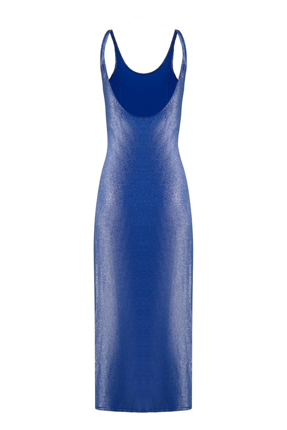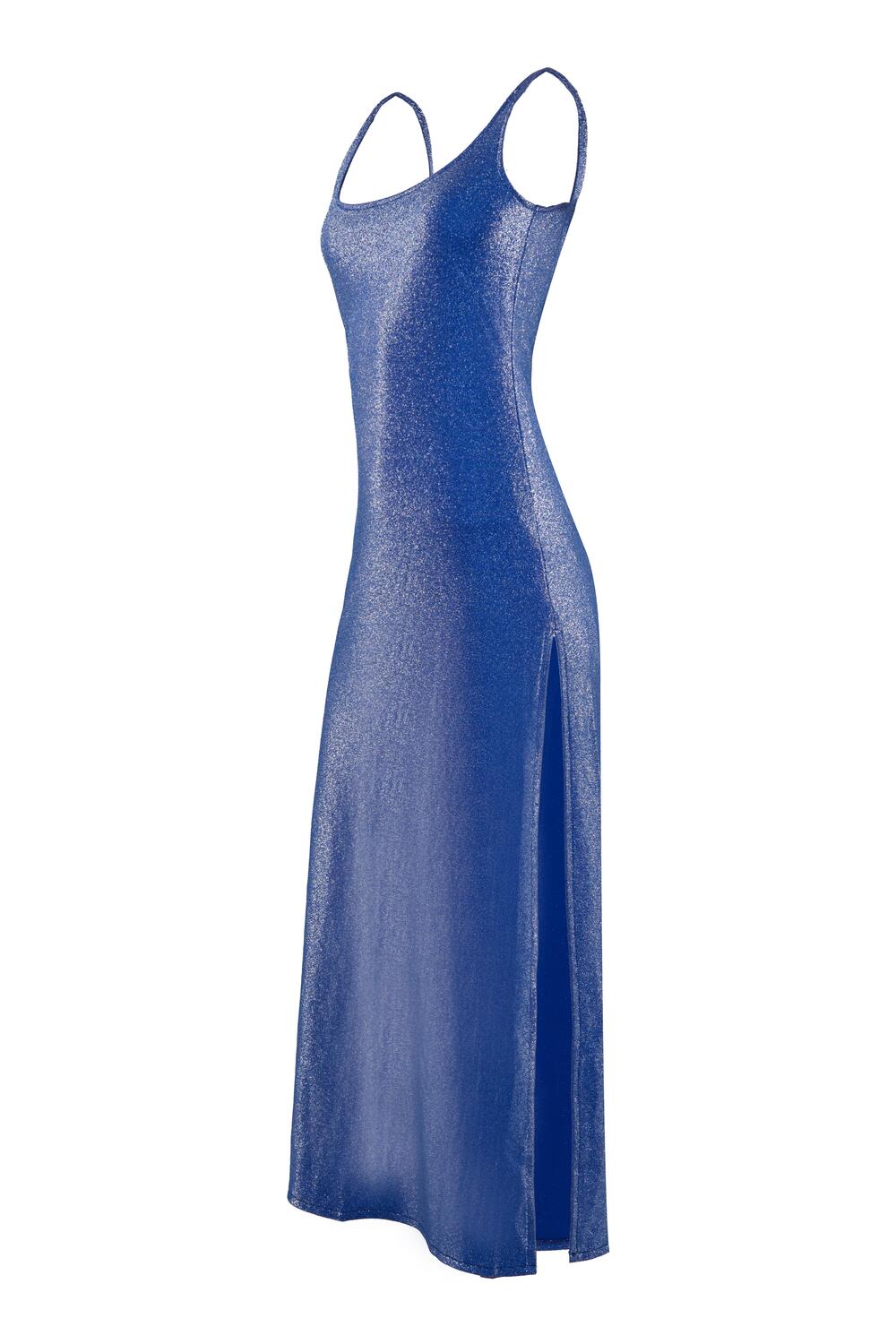 Göğüs dekolteli, kenardan yırtmaçlı, uzun elbise.