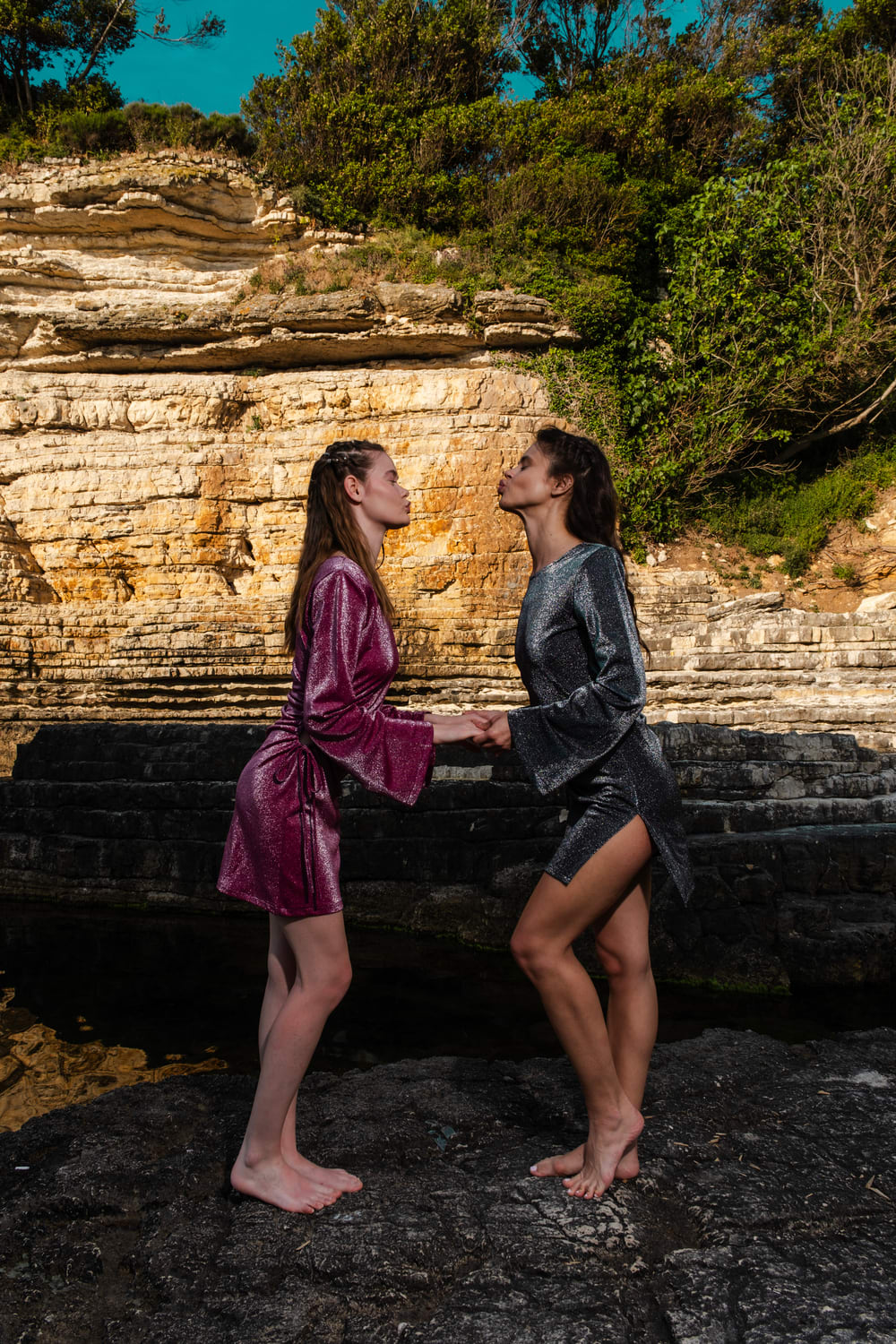 Model's measurements: Height 172cm, Chest 84cm, Waist 63cm, Hip 90cm. (Right Model / Black Dress)