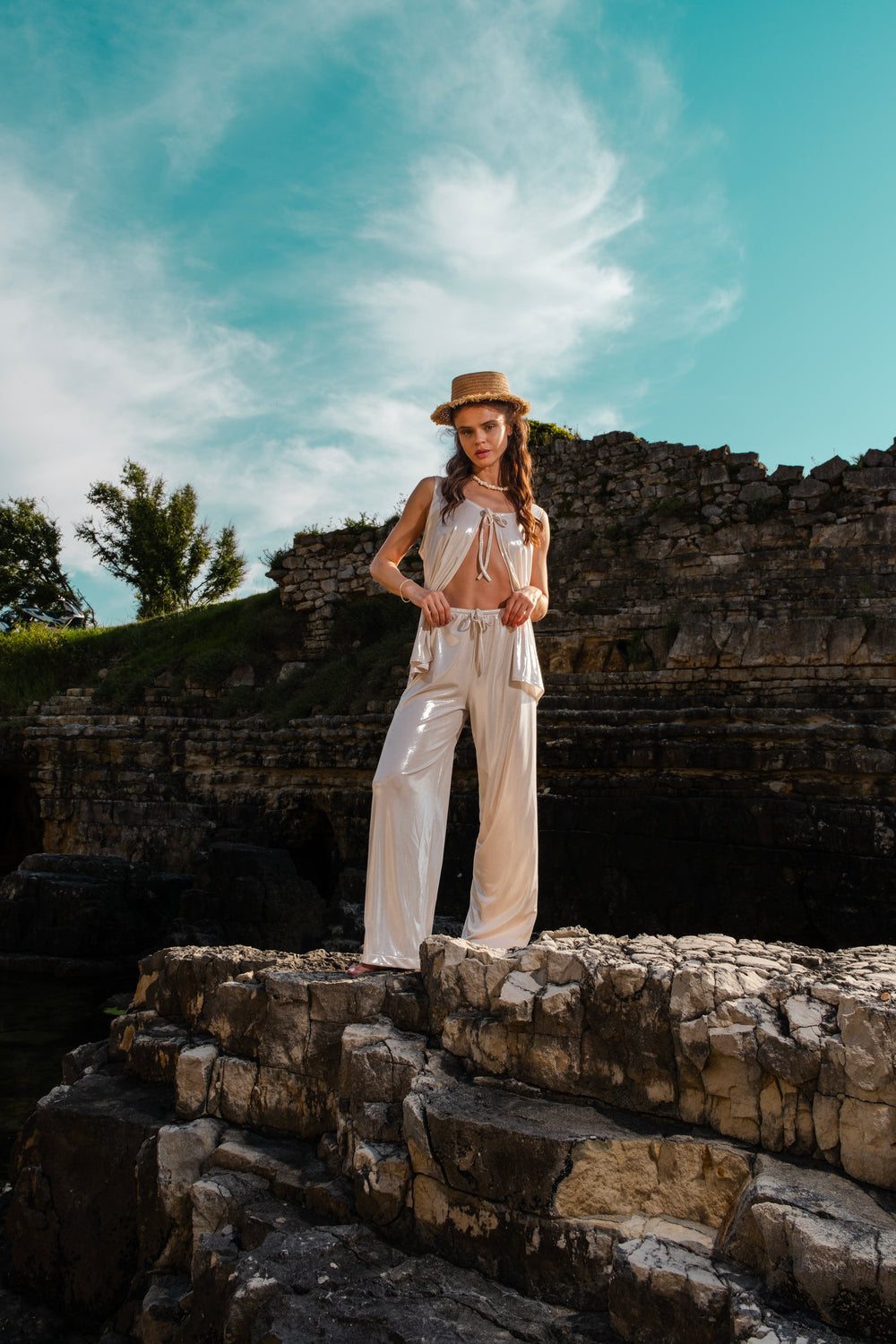 Modelin ölçüleri: Boy 172cm, Göğüs 84cm, Bel 63cm, Kalça 90cm.