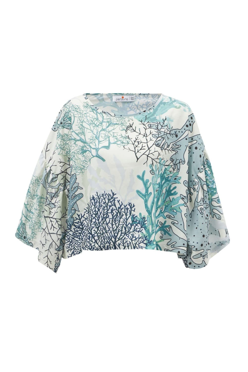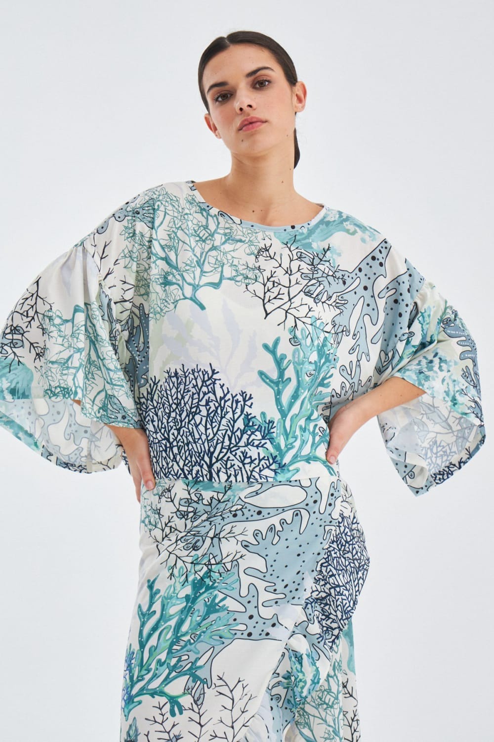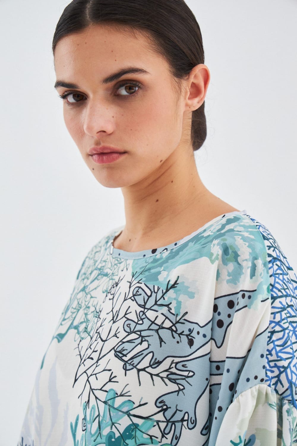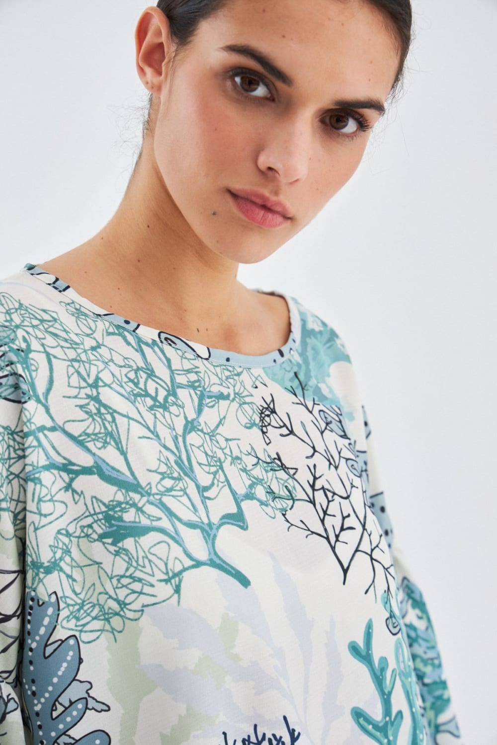 Blusa de mujer con textura mate de verano de corte holgado con estampado Nila verde/crudo