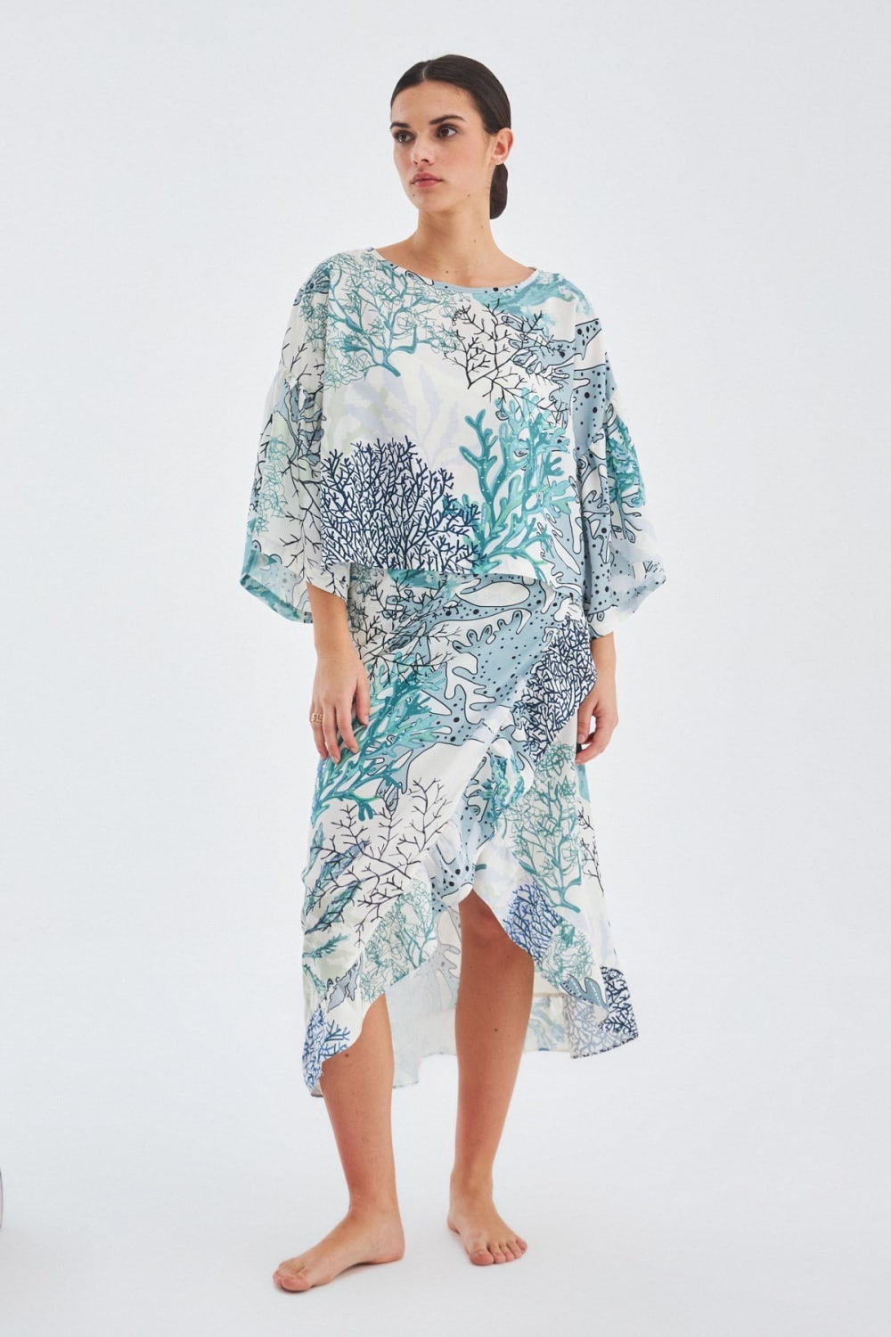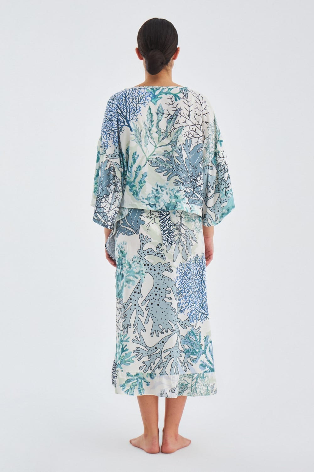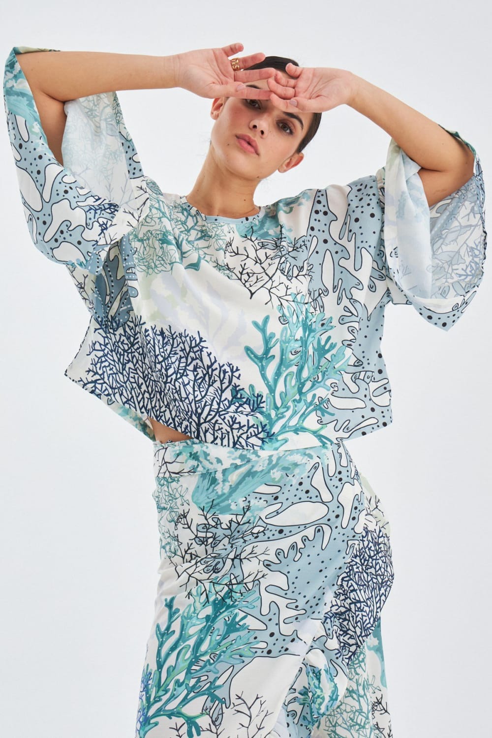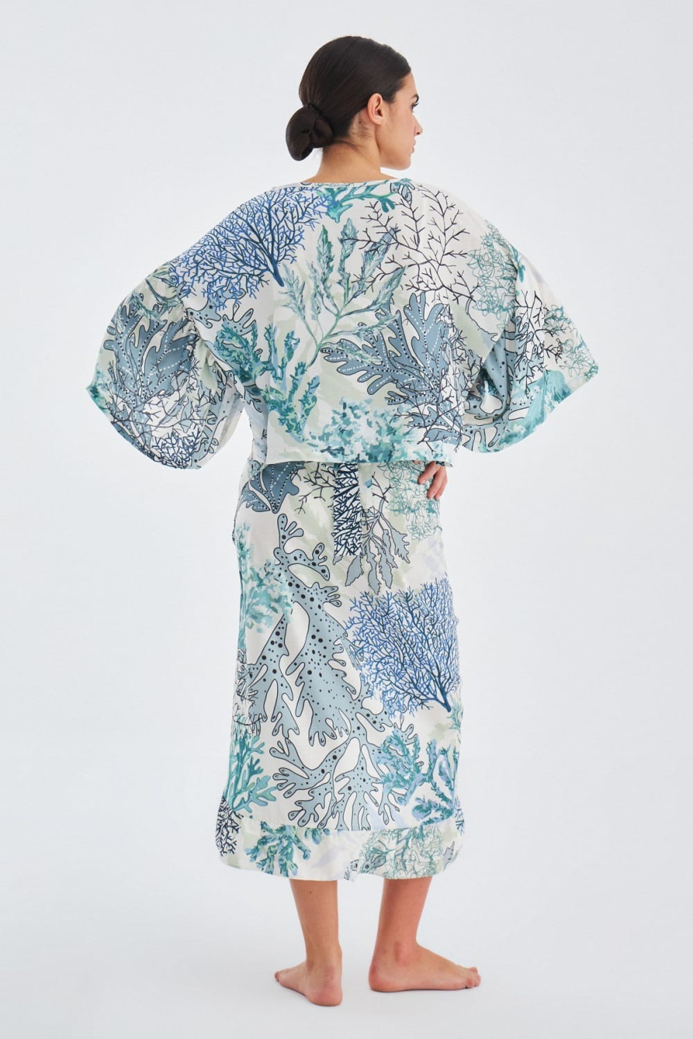 Blusa de mujer con textura mate de verano de corte holgado con estampado Nila verde/crudo
