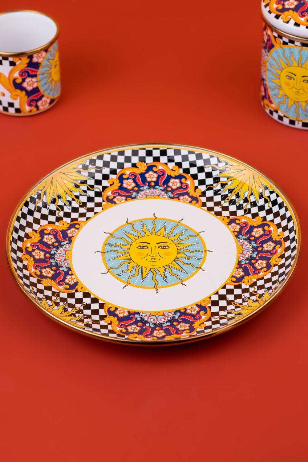 - Plato decorativo esmaltado para presentación/servicio.