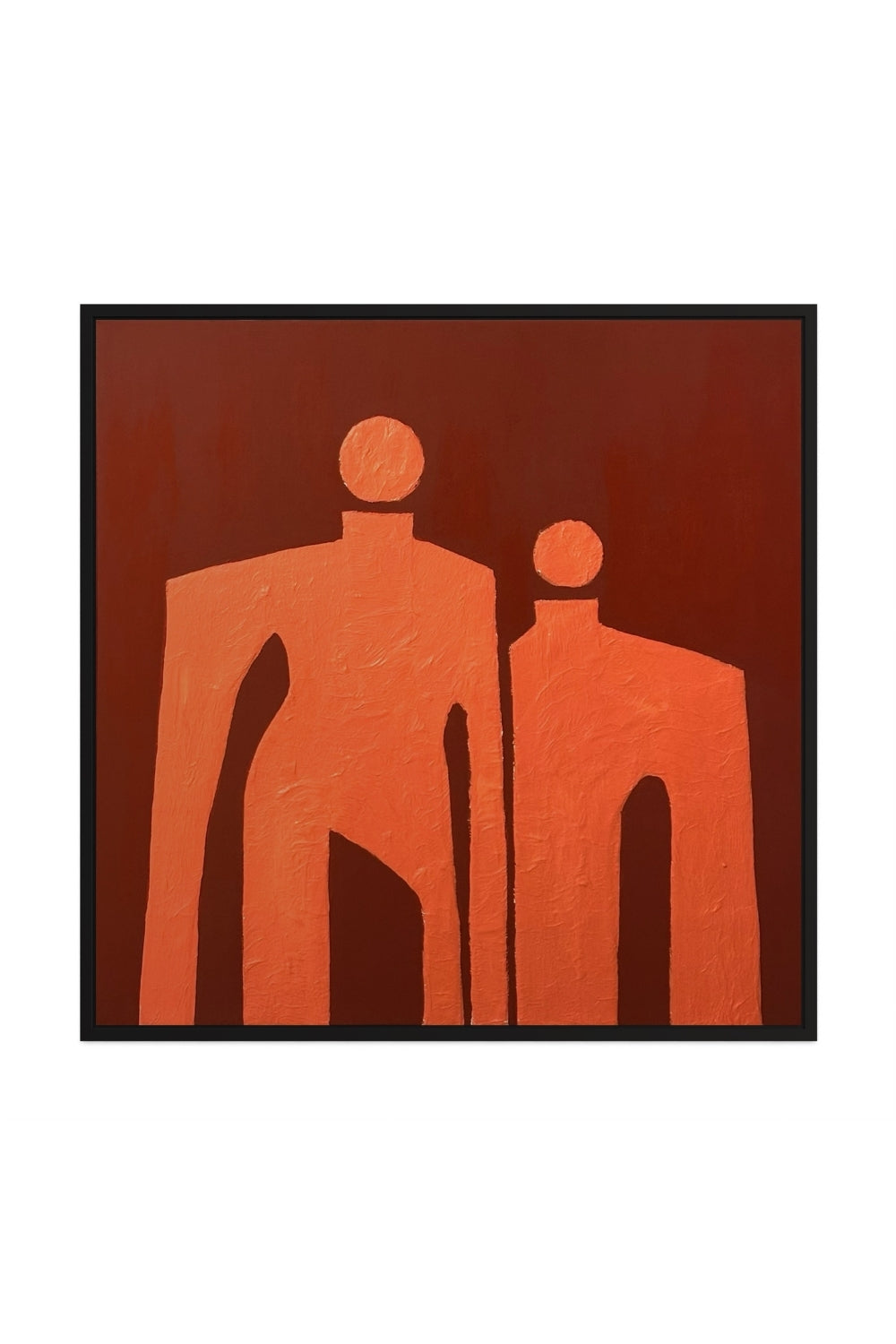 Bu orijinal akrilik tablo, iki insan formunu minimal detaylarla kurgularken, bedenin yokluğunu, hafızanın izlerini ve içsel boşluğu yüzeydeki doku ile anlatır.