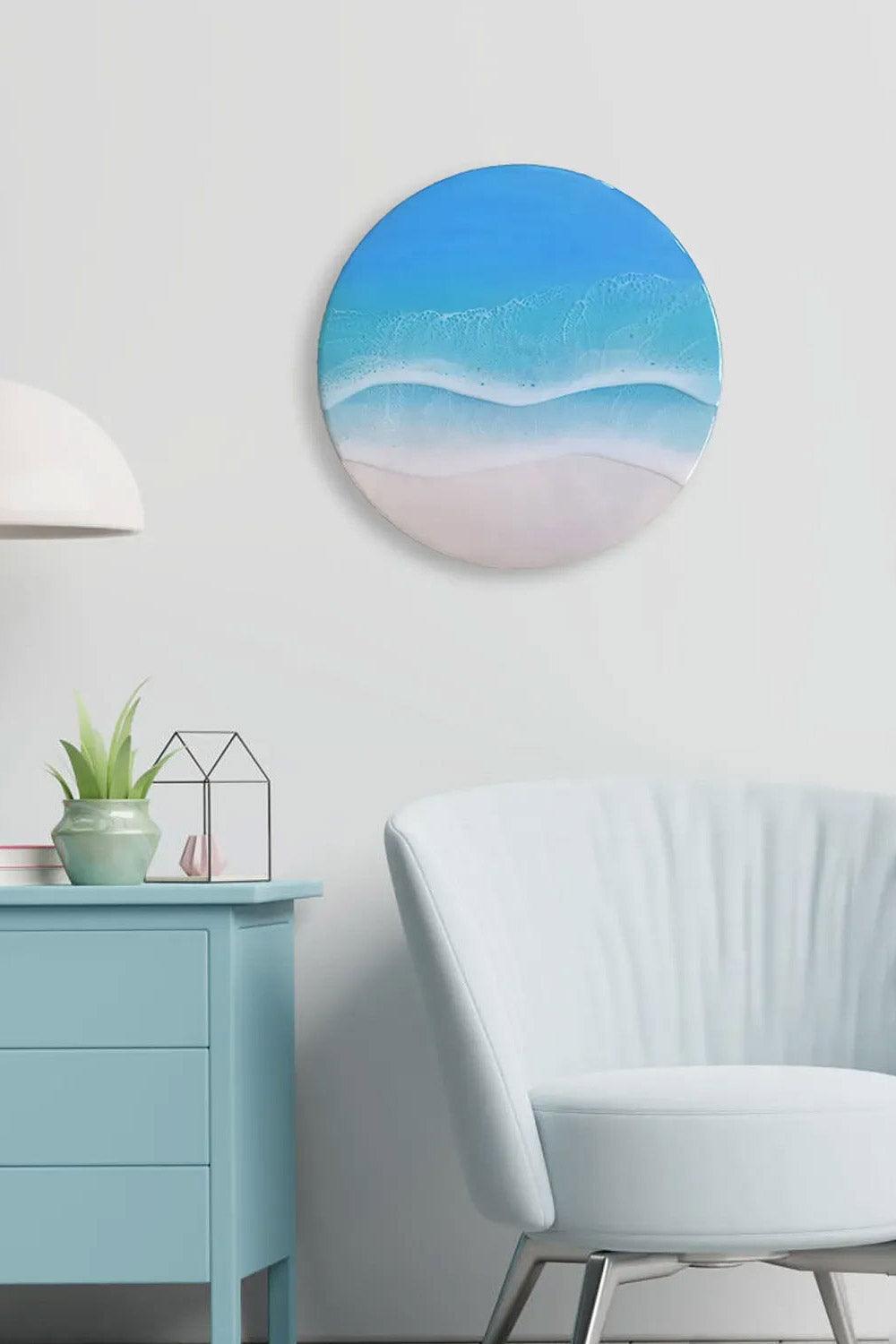 - Ahşap zemin üzerine akrilik boyama, 3 katmanlı reçine dalgası.