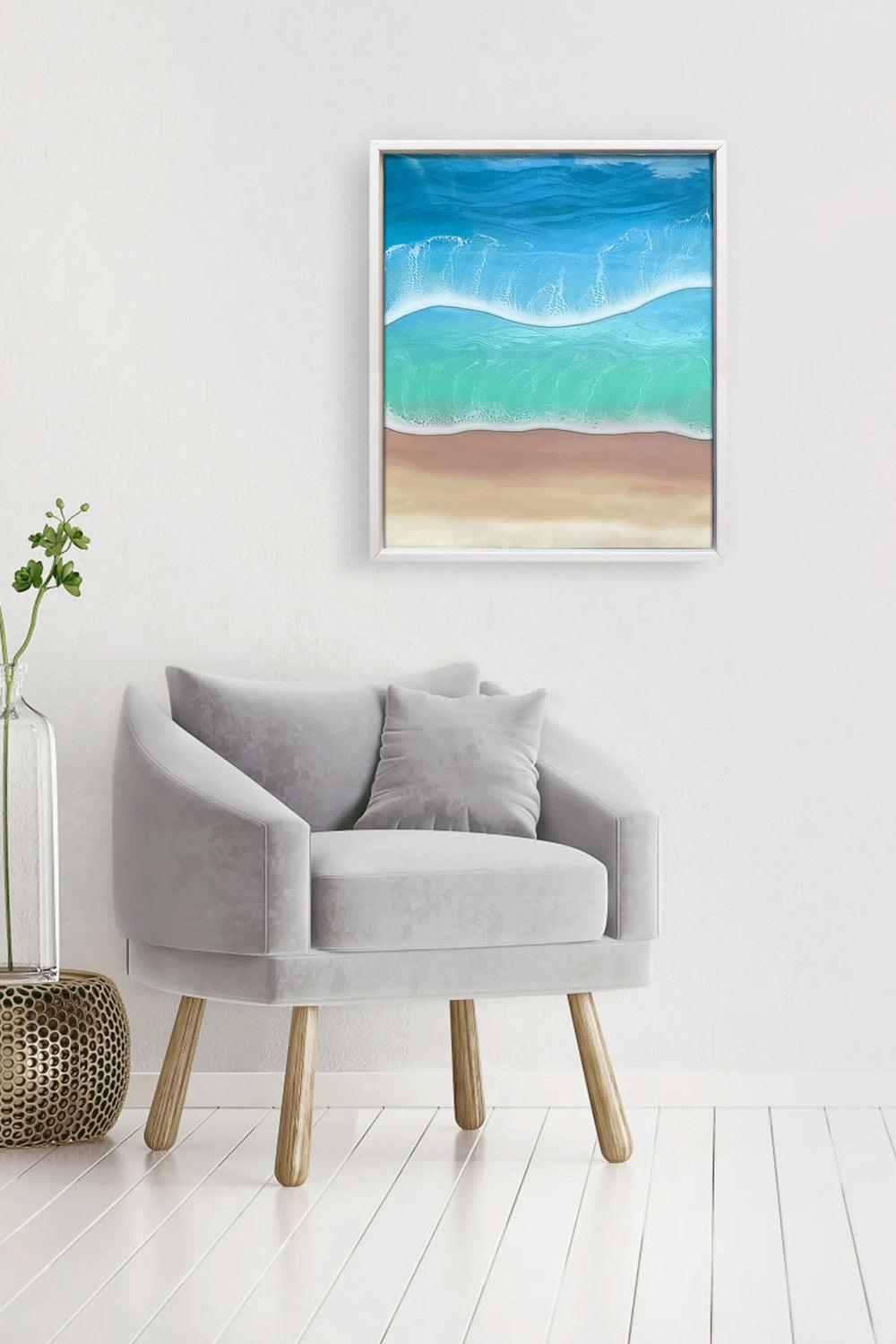 - Pintura acrílica sobre madera, onda de resina de 3 capas.