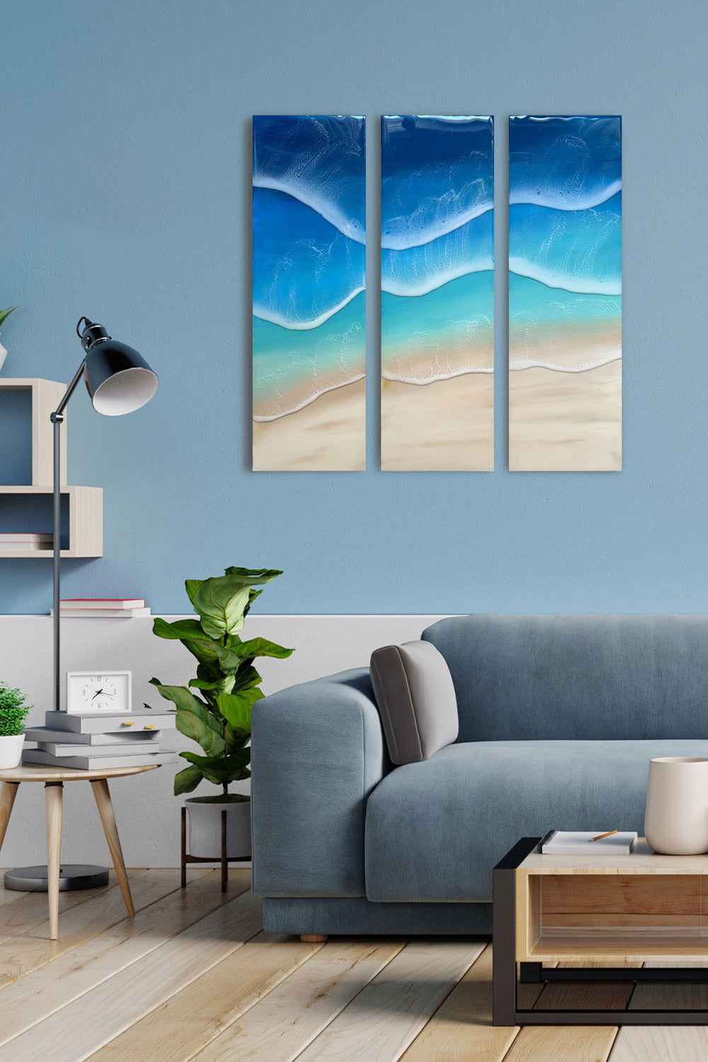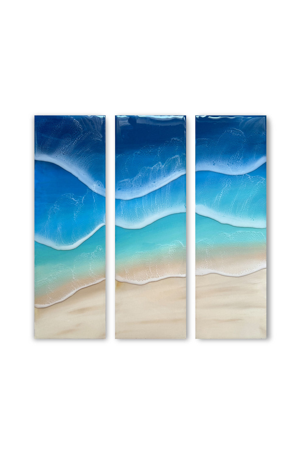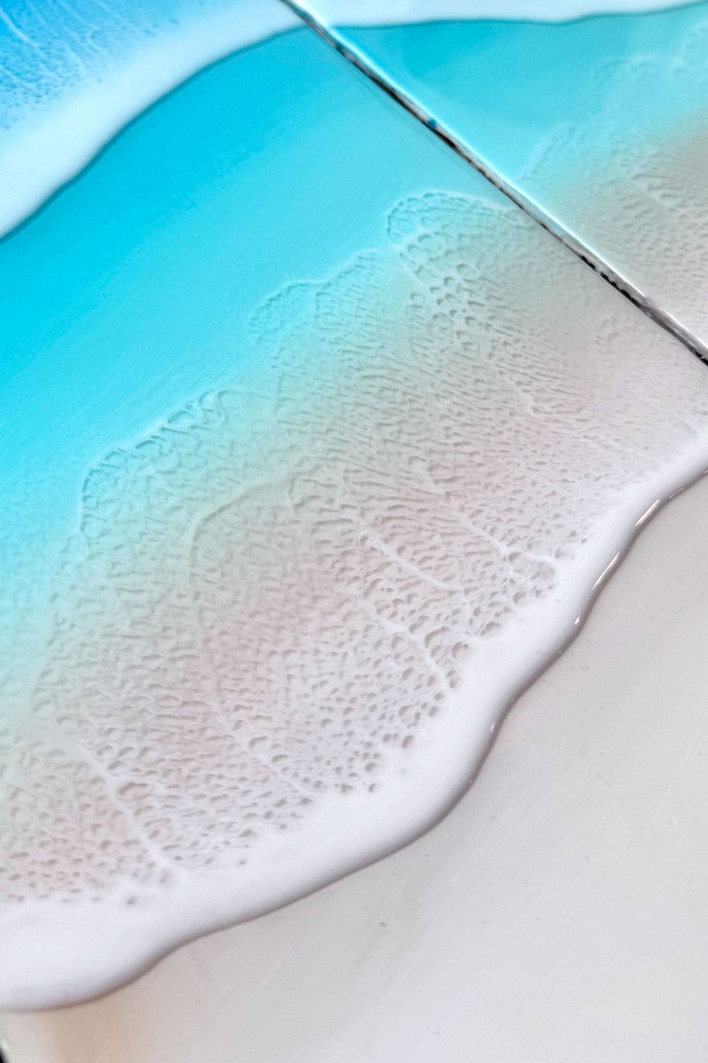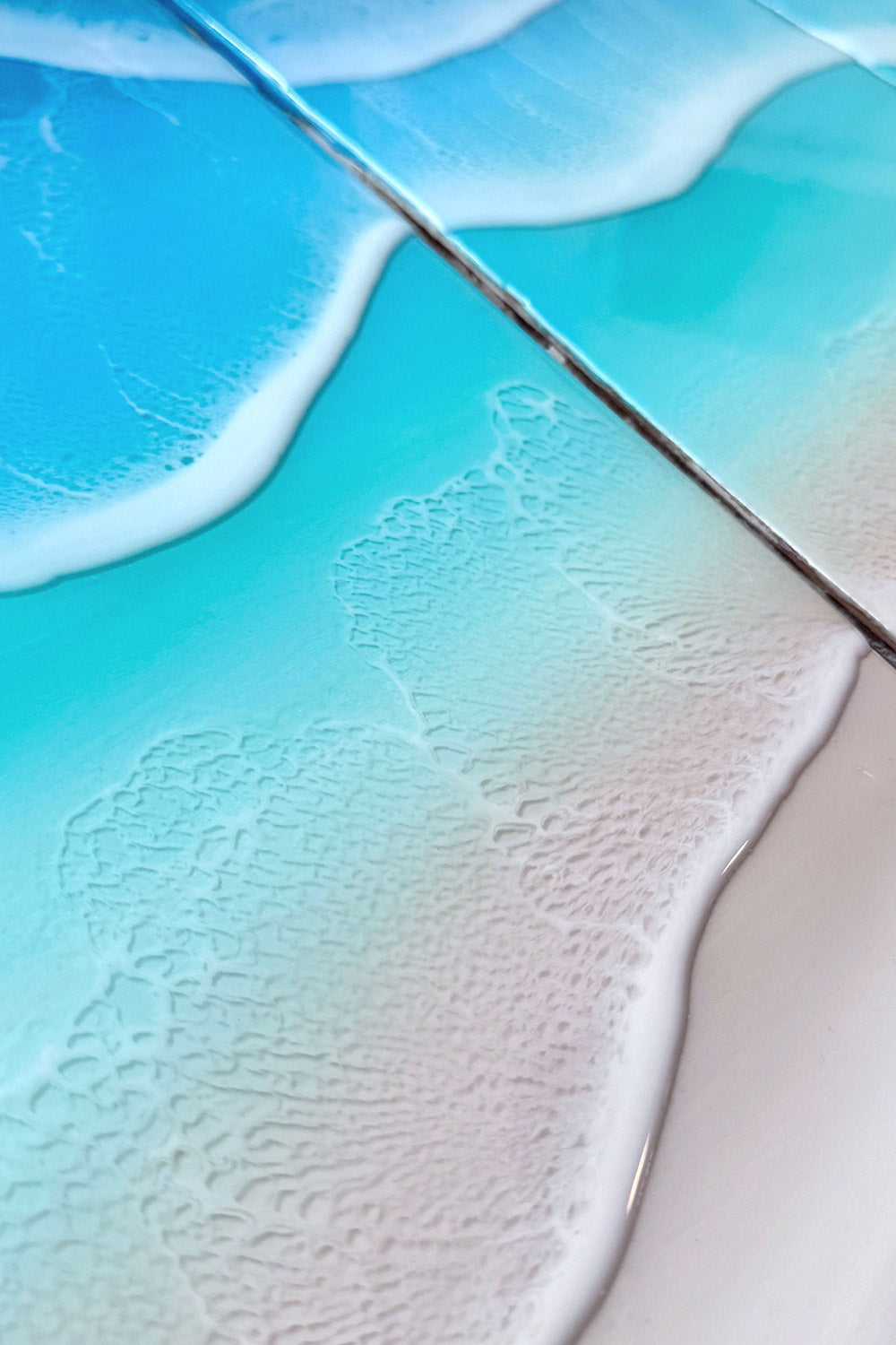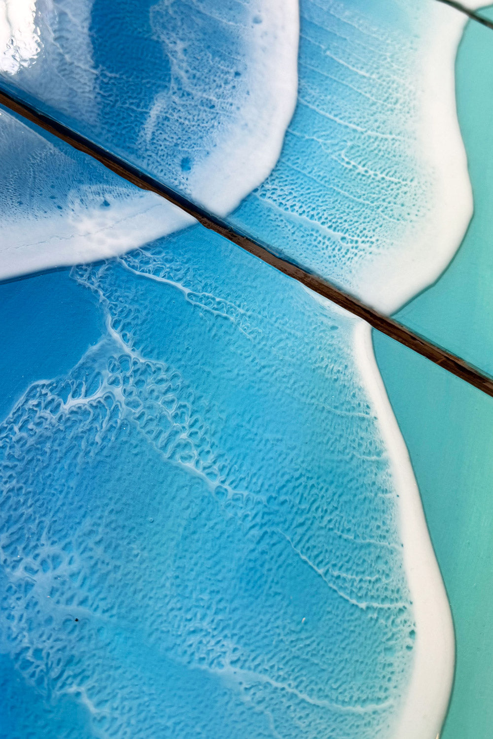 - Ahşap zemin üzerine akrilik boyama, 4 katmanlı reçine dalgası.