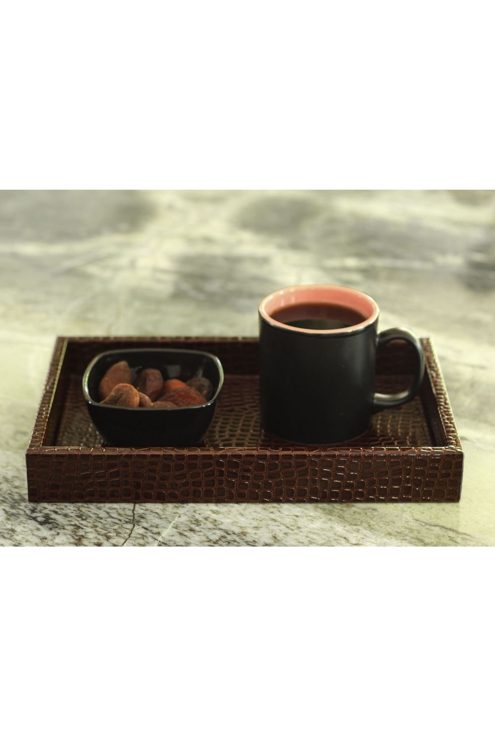 Modern Tasarım Krokodil Desenli Orta Boy Kahverengi Suni Deri Tepsi