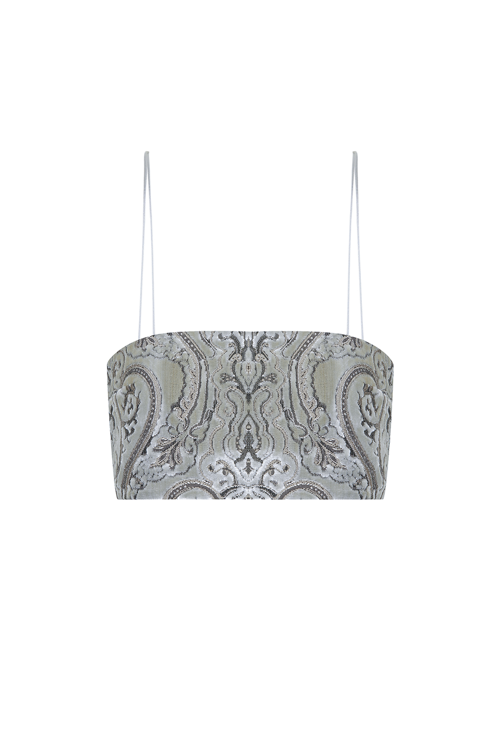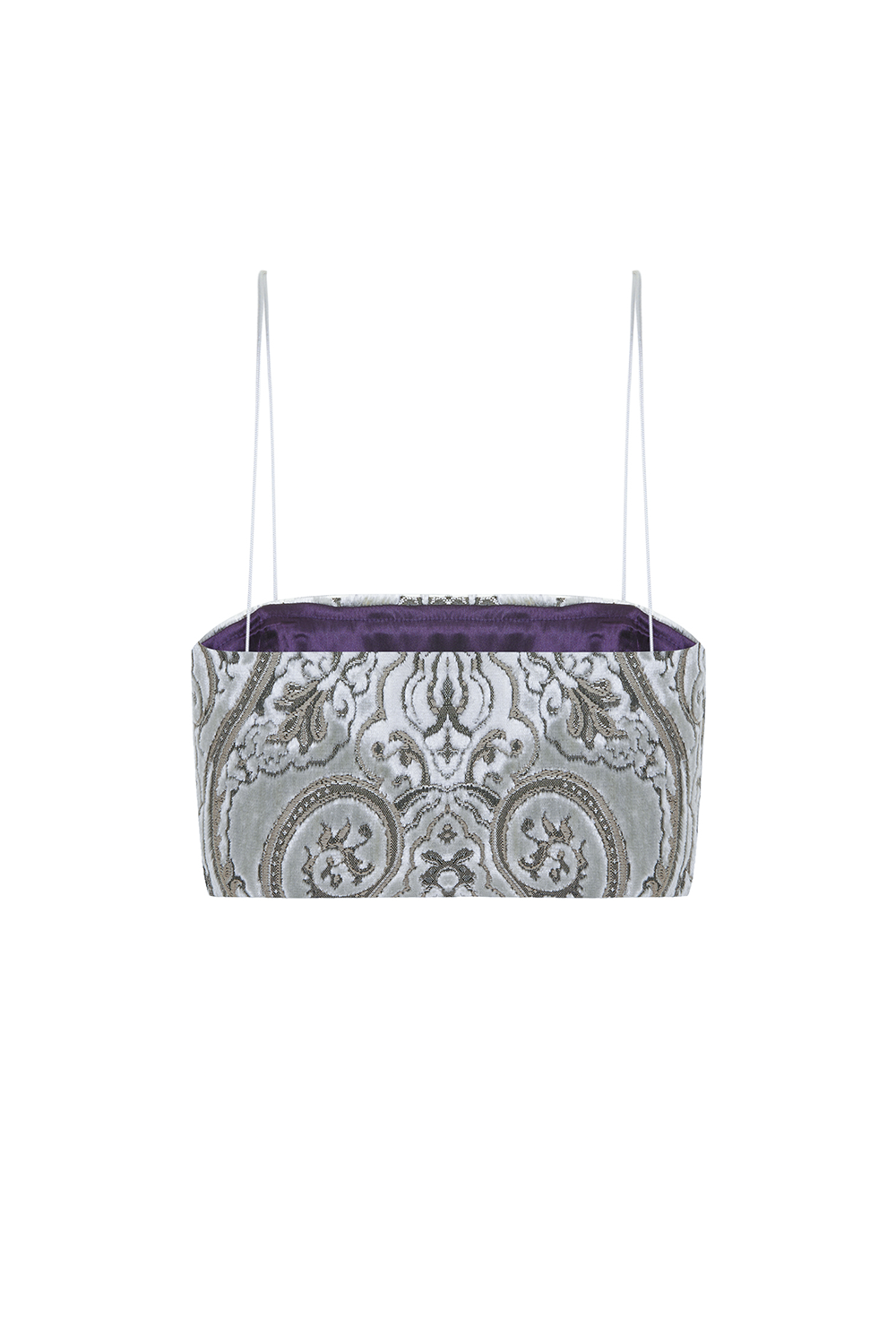Mini blusa Danae Spiralia de edición limitada con tirantes de hilo y el magnífico brillo del tejido de terciopelo,