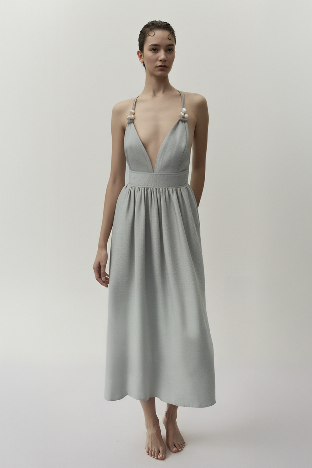 Limited Edition Pearl Siesta - Taş Rengi İncili Elbise