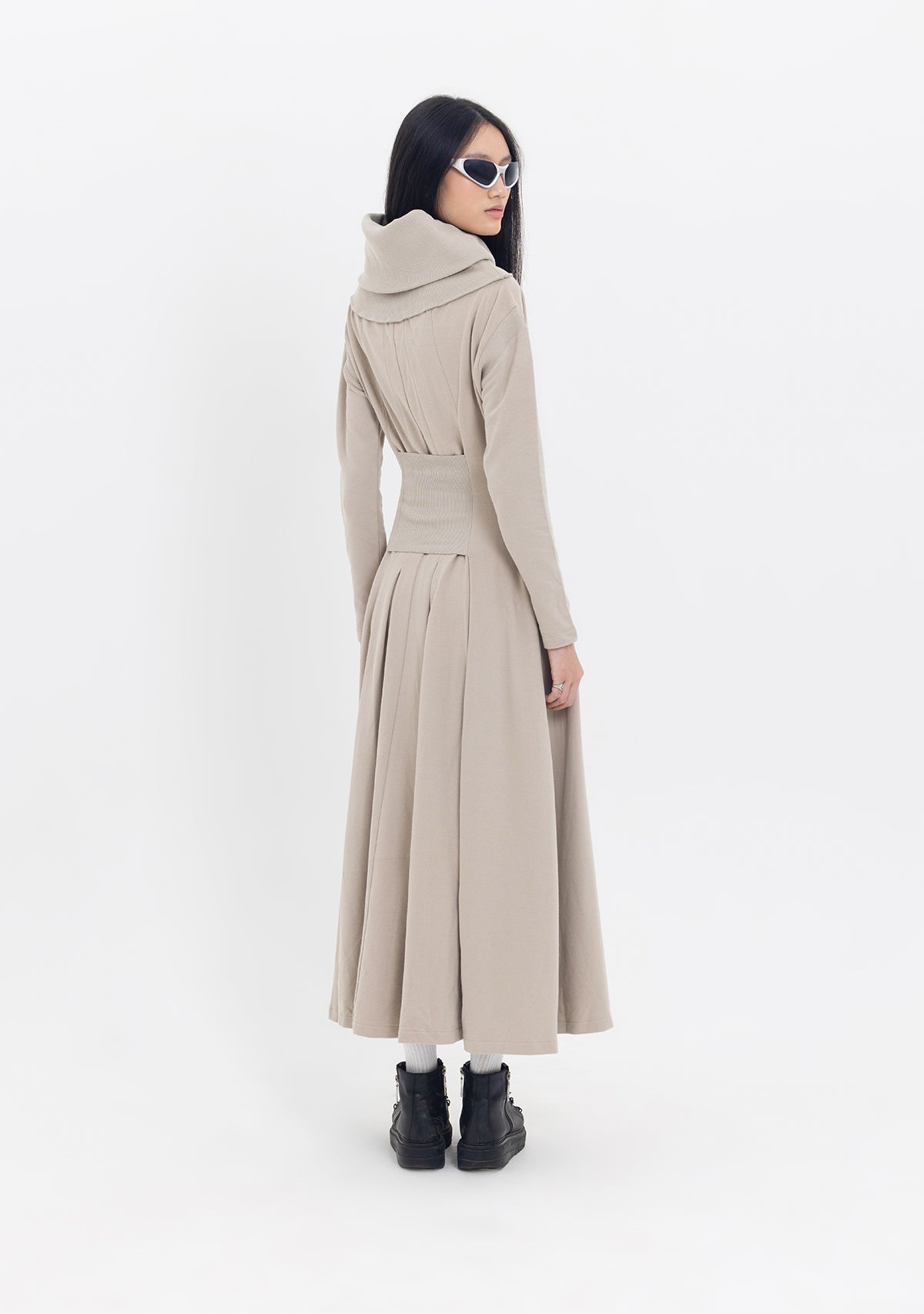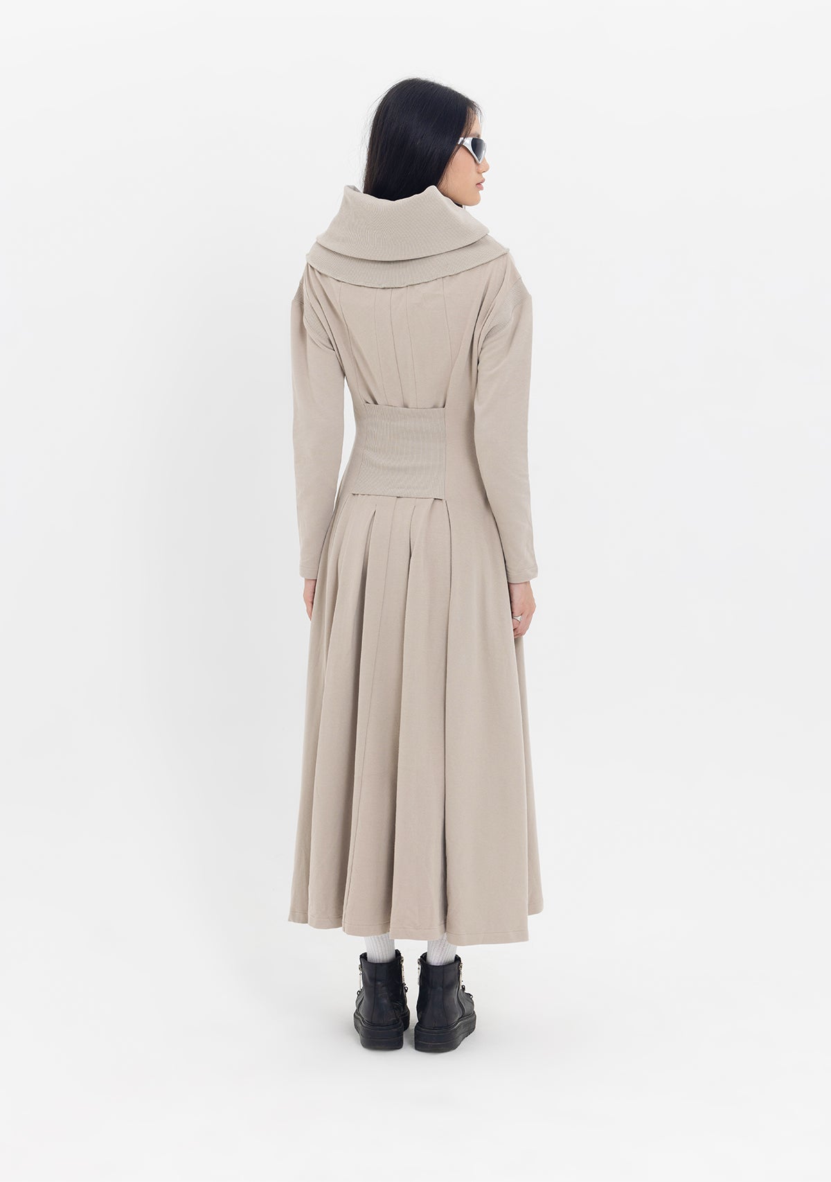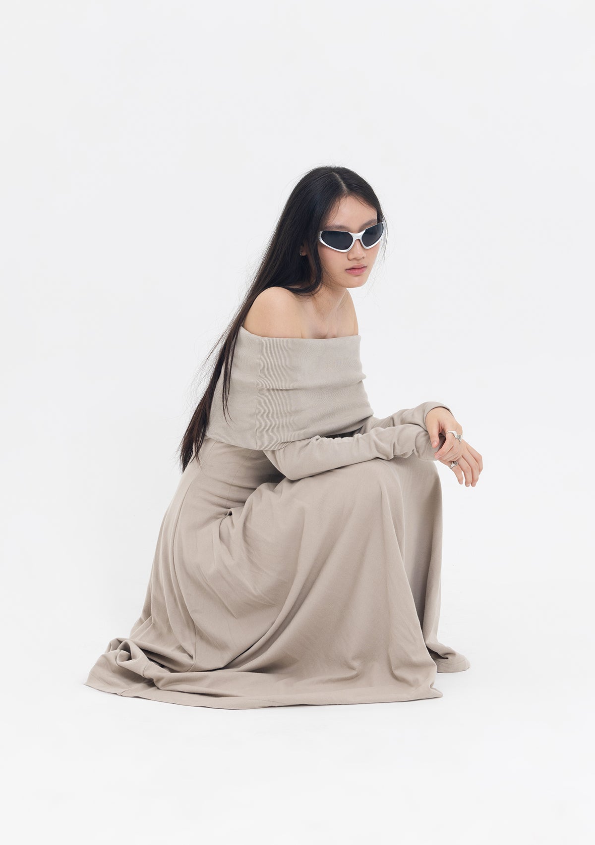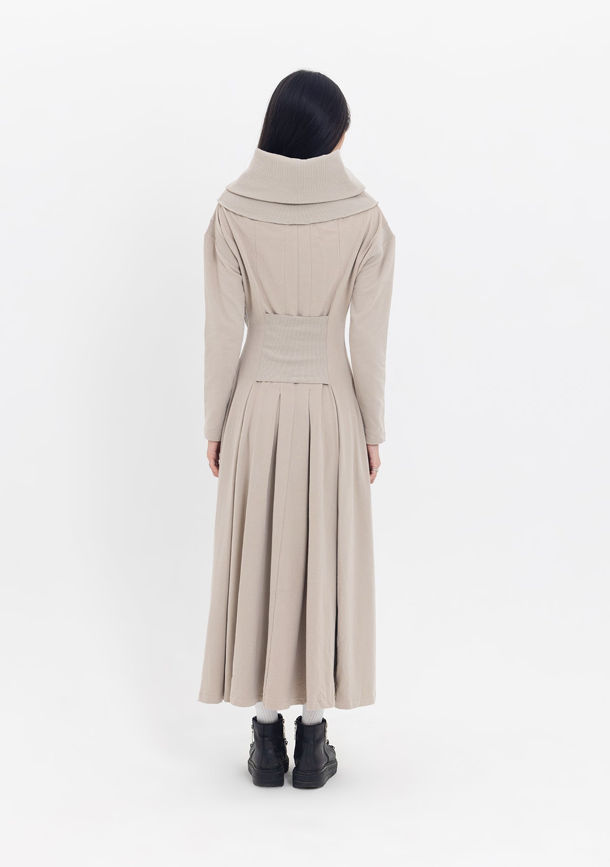 - Tiny x Pcfg iş birliğiyle tasarlanan Kayık Yaka Pileli Bej Uzun Elbise, modern ve zamansız bir şıklık sunan tasarımıyla öne çıkıyor.