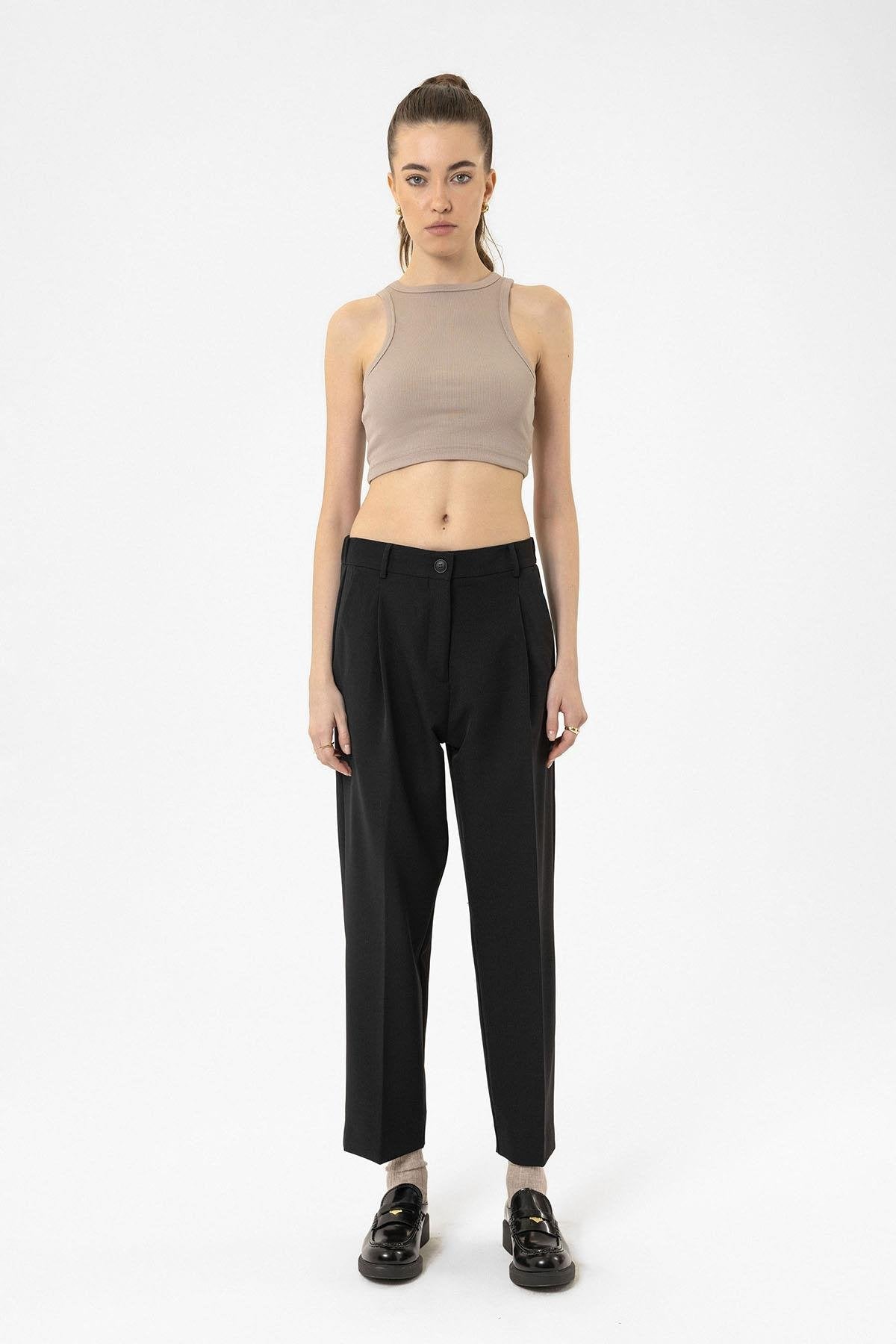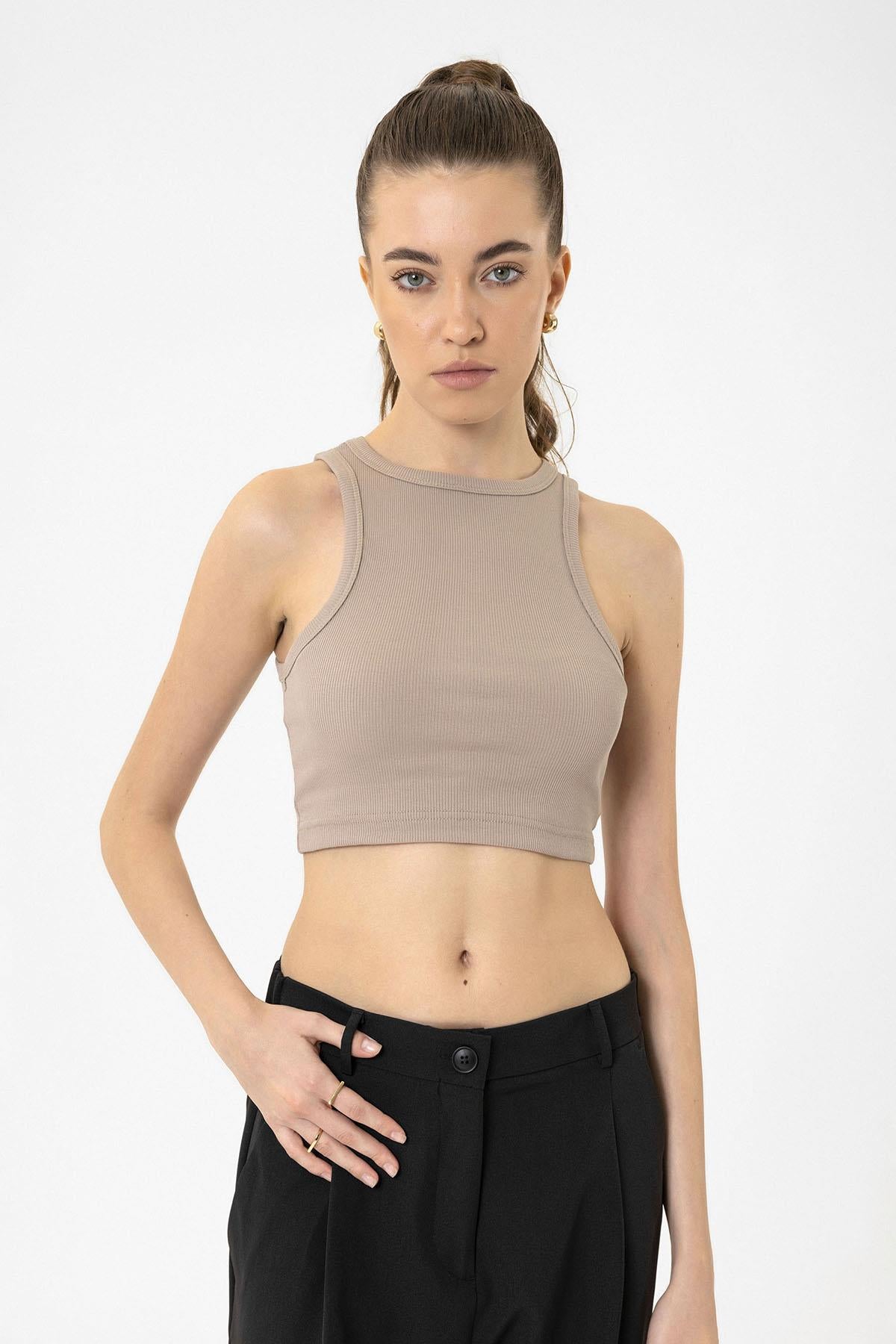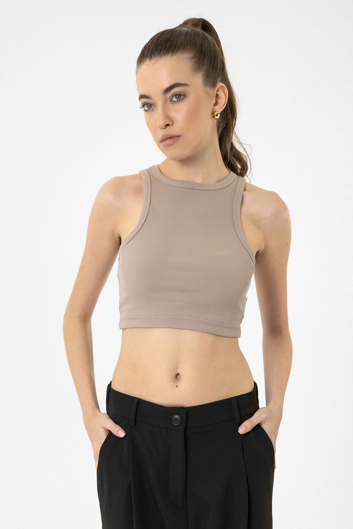 Bej Kadın Fitilli Crop Atlet
