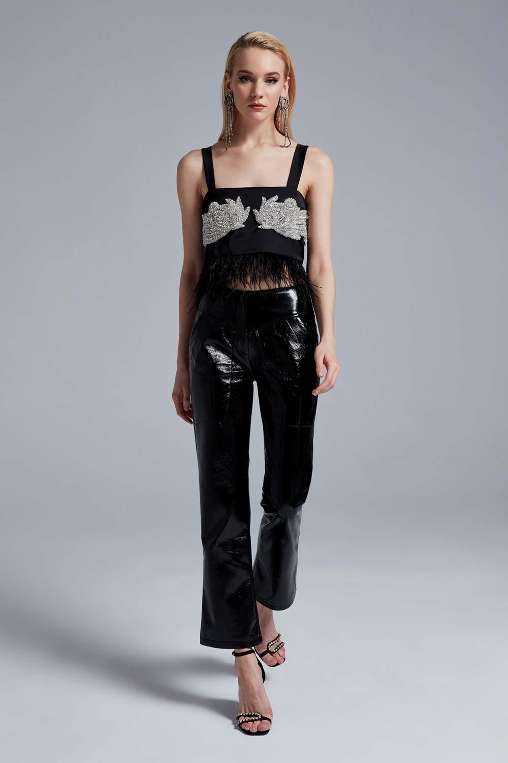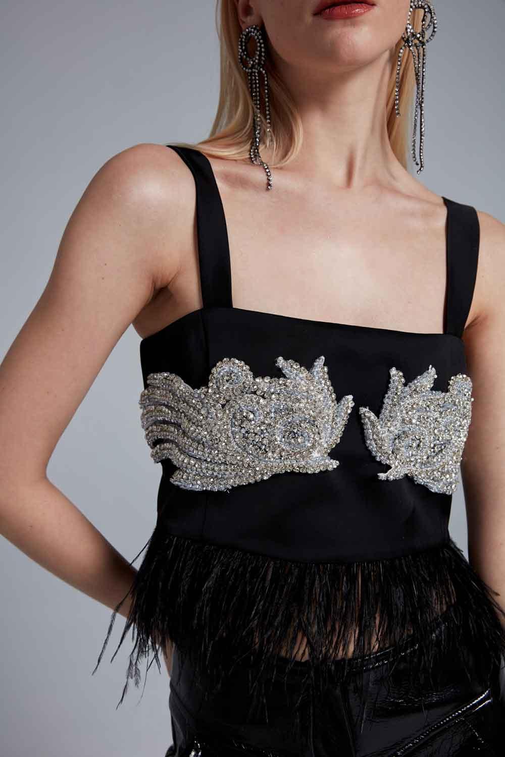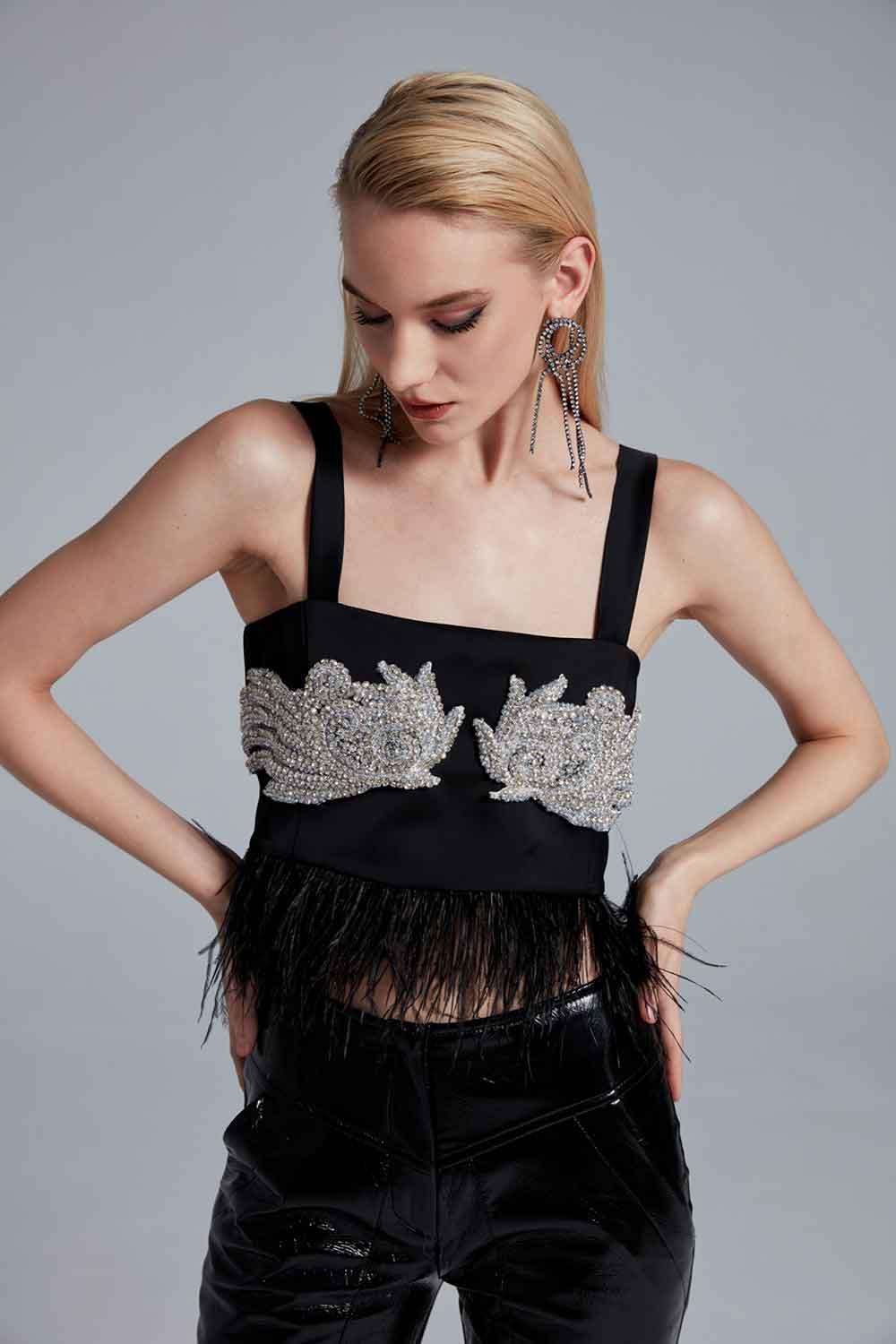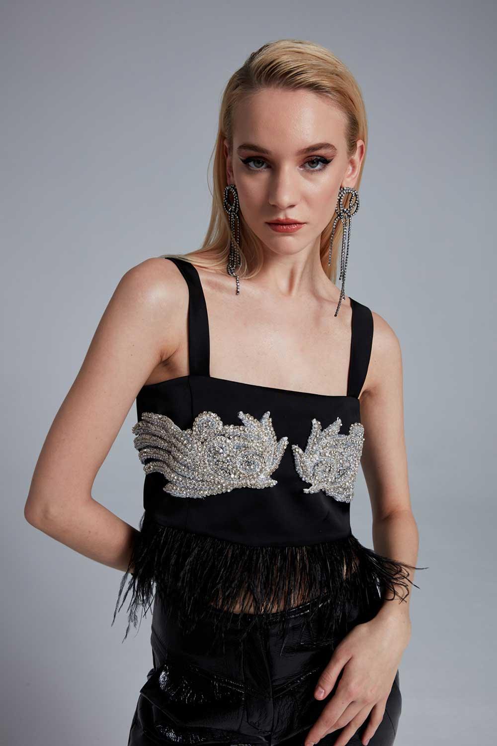 Bola de plumas bordada Raven Stone