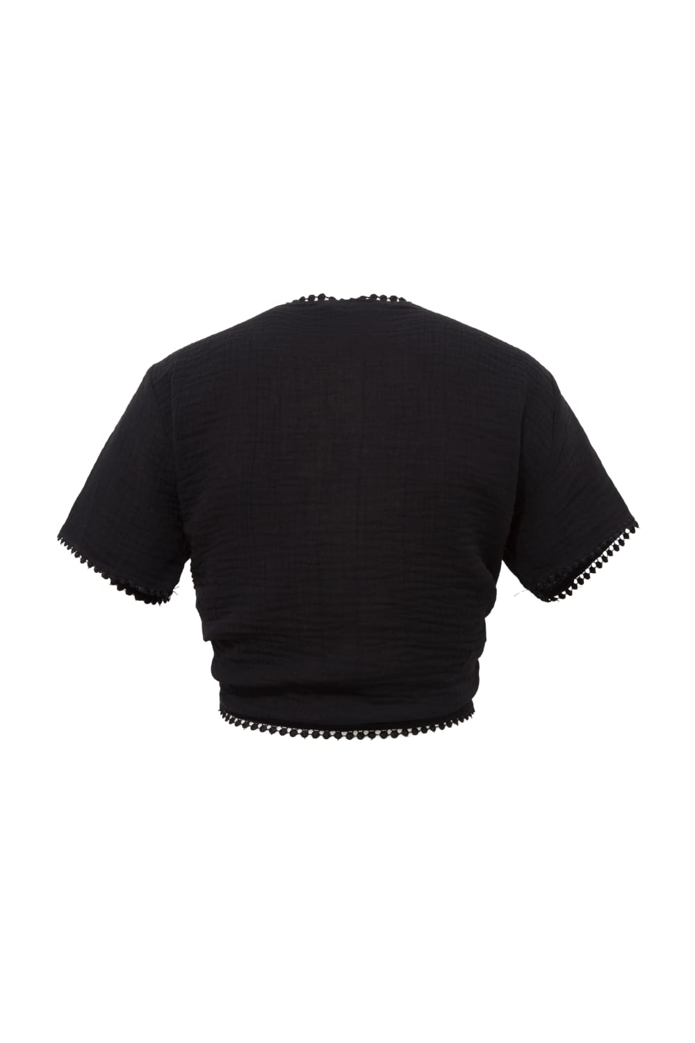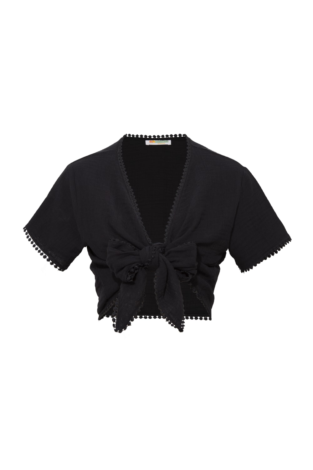 Kenar Detaylı Önden Bağlamalı Bluz%100 Pamuk,Yumuşak dokulu ve nefes alabilen müslin kumaştan üretilmiştir,Ürün baskısız, düz renk ve crop boy bir üründür,Önden bağlama özelliği bordür detayı ile birleşerek şık bir görünüm sunmaktadırBAKIM ÖNERİLERİ:30 derecede yıkama yapılabilir,Ağartıcı kullanılamaz,Makinede kurutmayınız.Bel: 94 cmBoy: 47 cm