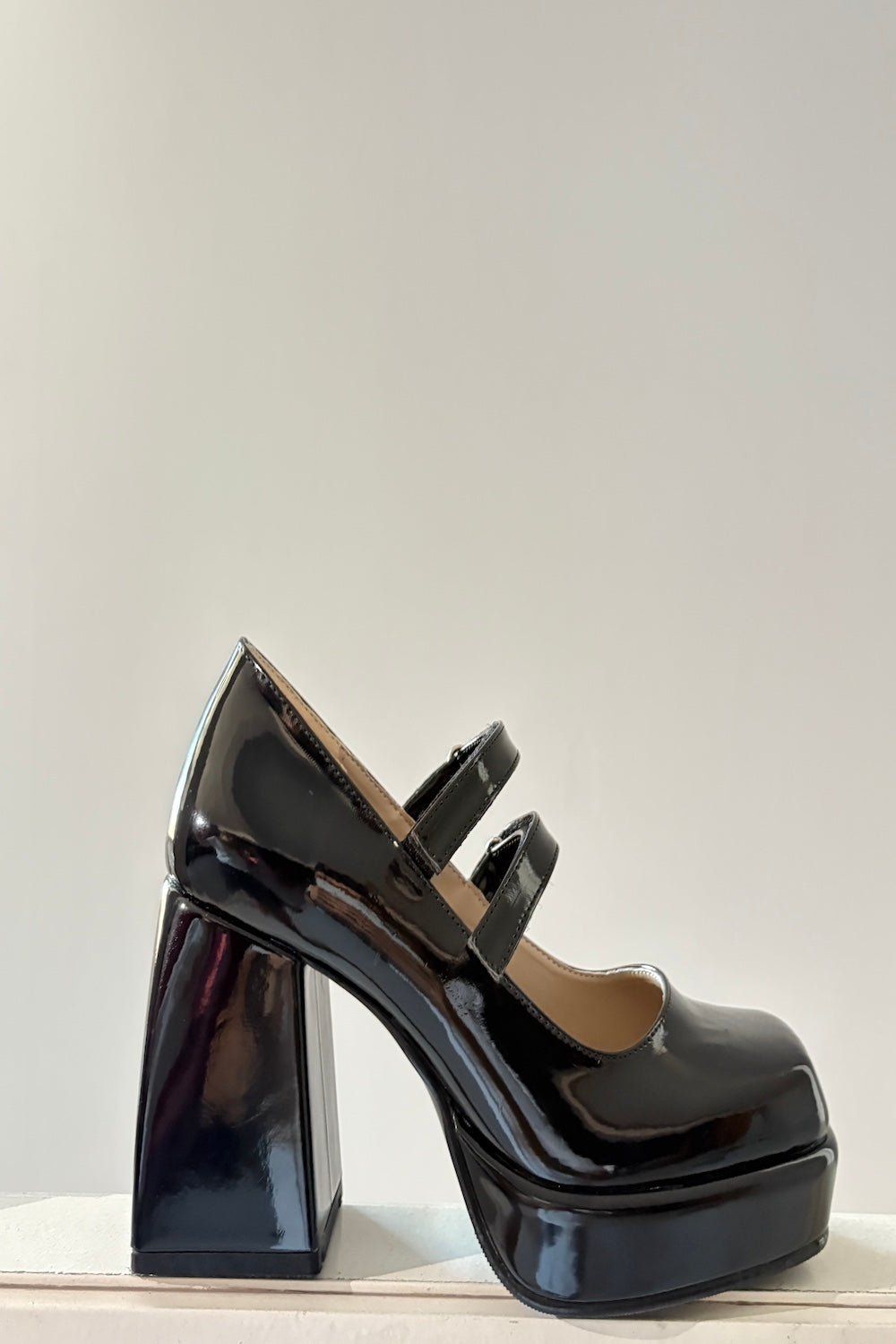 Thurisaz El Yapımı Rugan Siyah Topuklu Ayakkabı