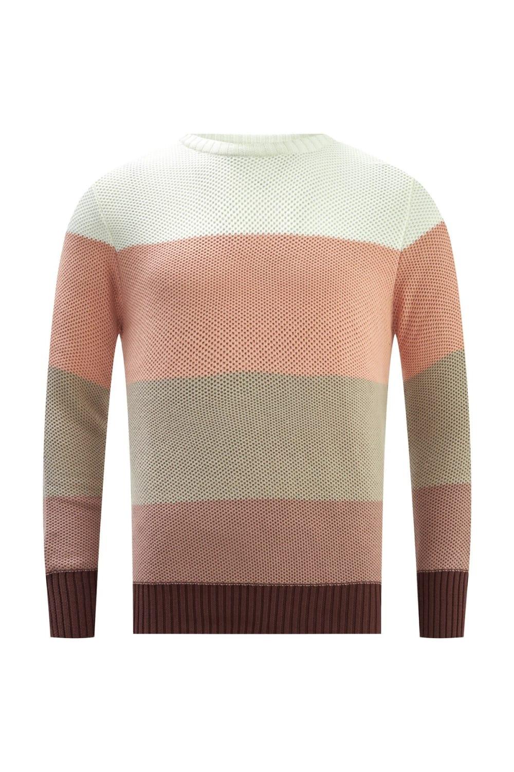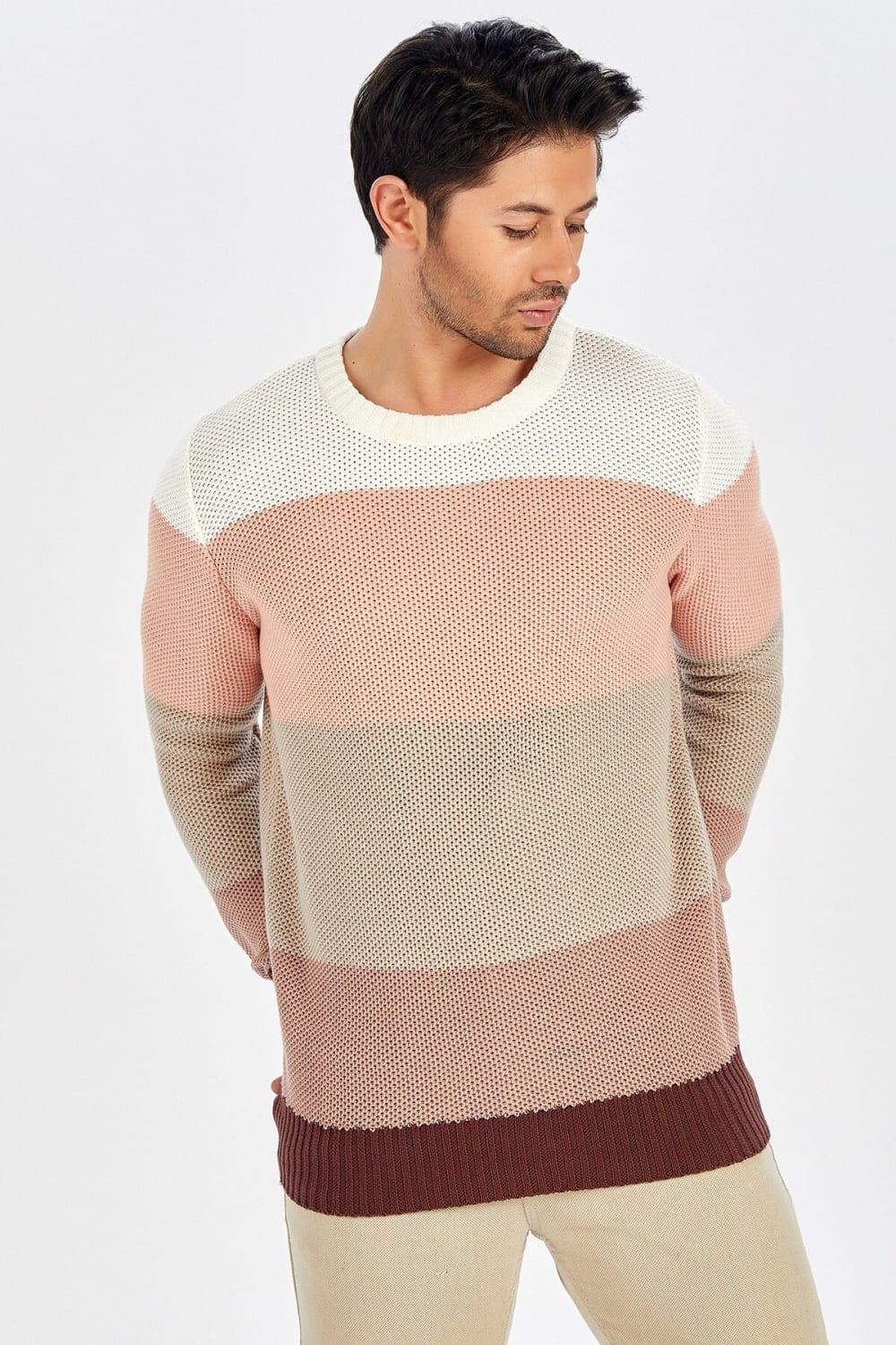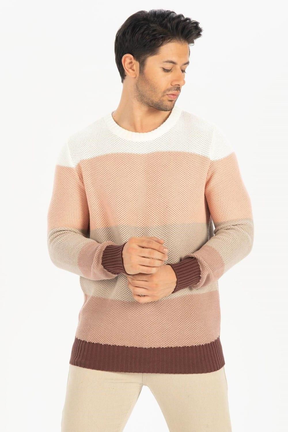 suéter de punto de hombre con cuello redondo degradado de color marrón