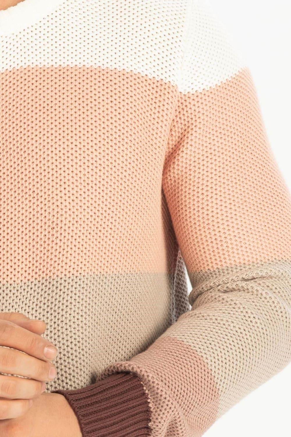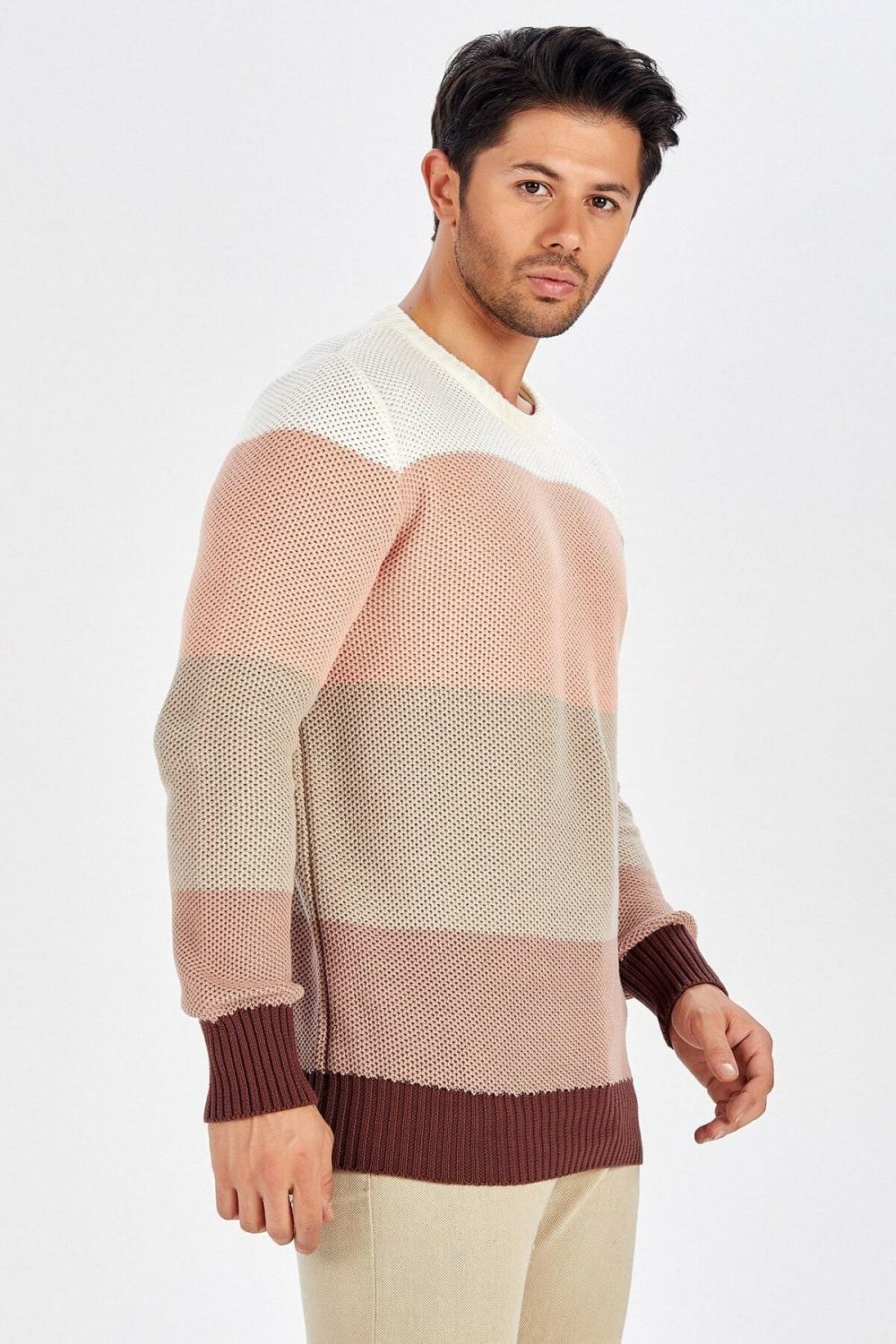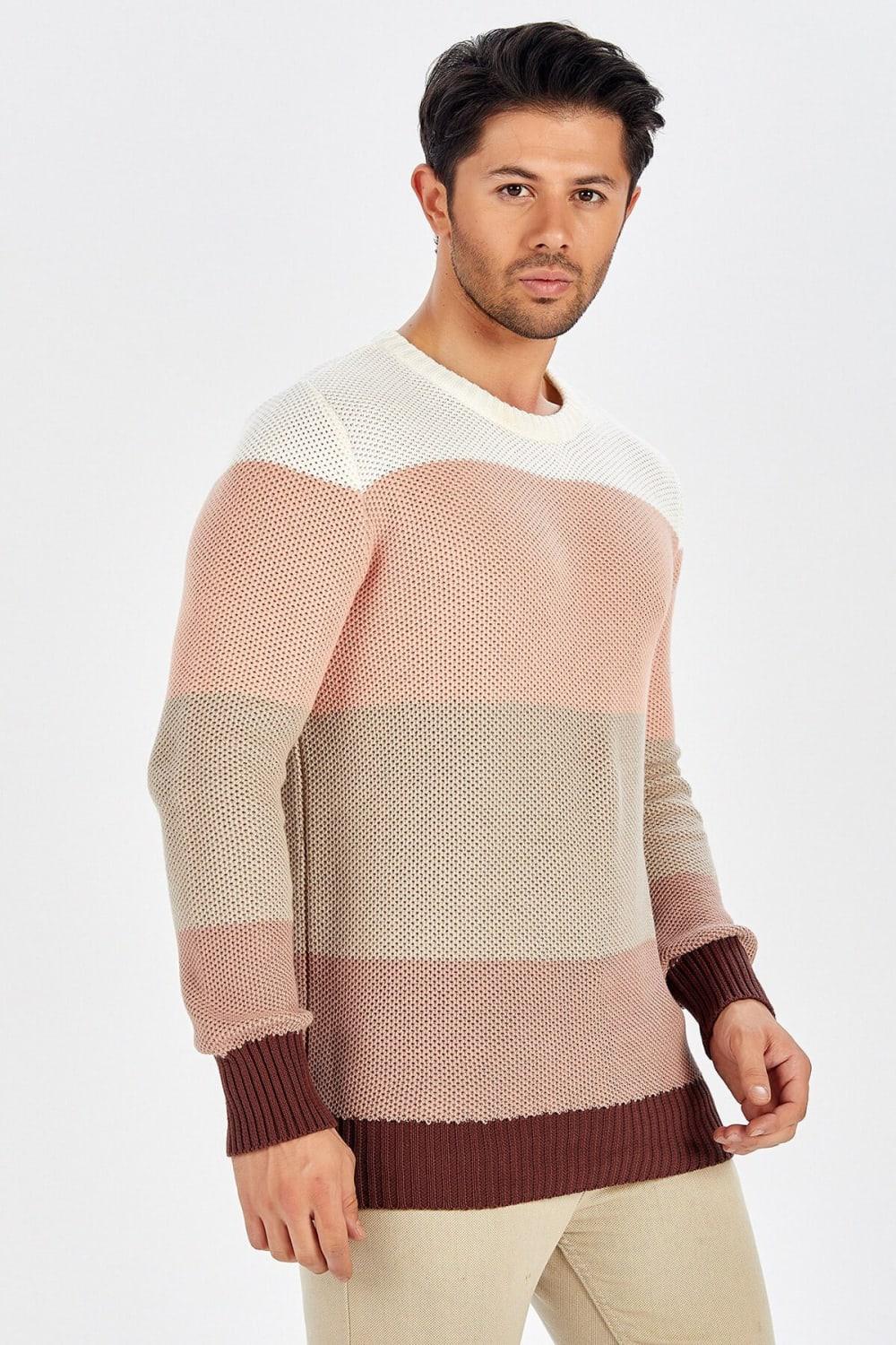 suéter de punto de hombre con cuello redondo degradado de color marrón