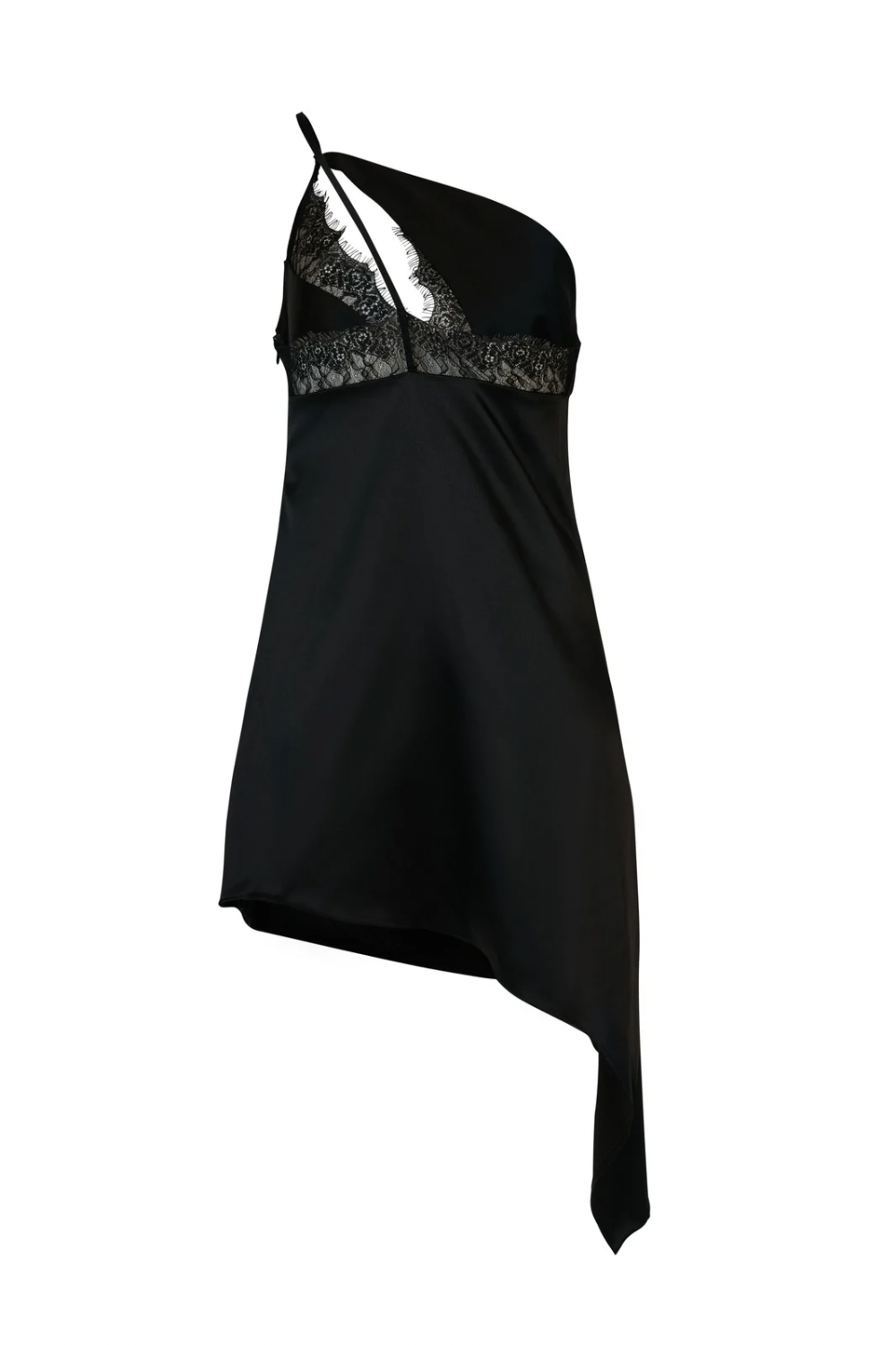 Black Siren Dress, zarafet ve modern şıklığı aynı anda taşıyan, geceden davete her stile uyum sağlayan özel bir tasarımdır. Asimetrik kesimi ve dantel detaylı göğüs formu, elbiseye sofistike bir çekicilik kazandırırken; akışkan dokusu vücudu zarifçe takip eder. Hafif drapeli yapısı sayesinde hareket ettikçe dalgalanan silüeti, feminen bir duruş yaratır.