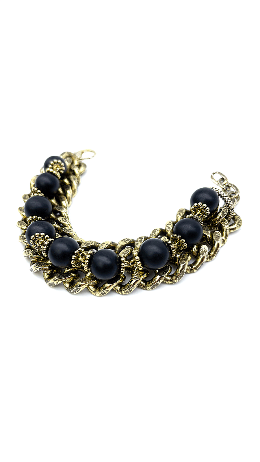 Zerafetin ve gücün mükemmel bir kombinasyonunu temsil ederken Dubh Altın Kaplama Zincir Bileklik ile stilinizi yükseltin. Bu göz alıcı tasarım, toplamda üç katmandan oluşur. İlk iki sıra, 22 ayar altın kaplama pirinçten zarafeti sunar. Üçüncü sıra ise, siyah onyx taşı ve altın kaplama pirinç halkaların şık bir birleşimini sergiler. Dubh Altın Kaplama Zincir Bileklik, siyahın asaletiyle altının parlaklığını ustalıkla birleştirir. Siyah ve altın, gücün ve zarafetin bir araya geldiği birinci sınıf bir stil sunar. Dubh Altın Kaplama Zincir Bileklik, özel anlarınızda veya gündelik şıklığınızı tamamlamak için mükemmel bir seçenektir.