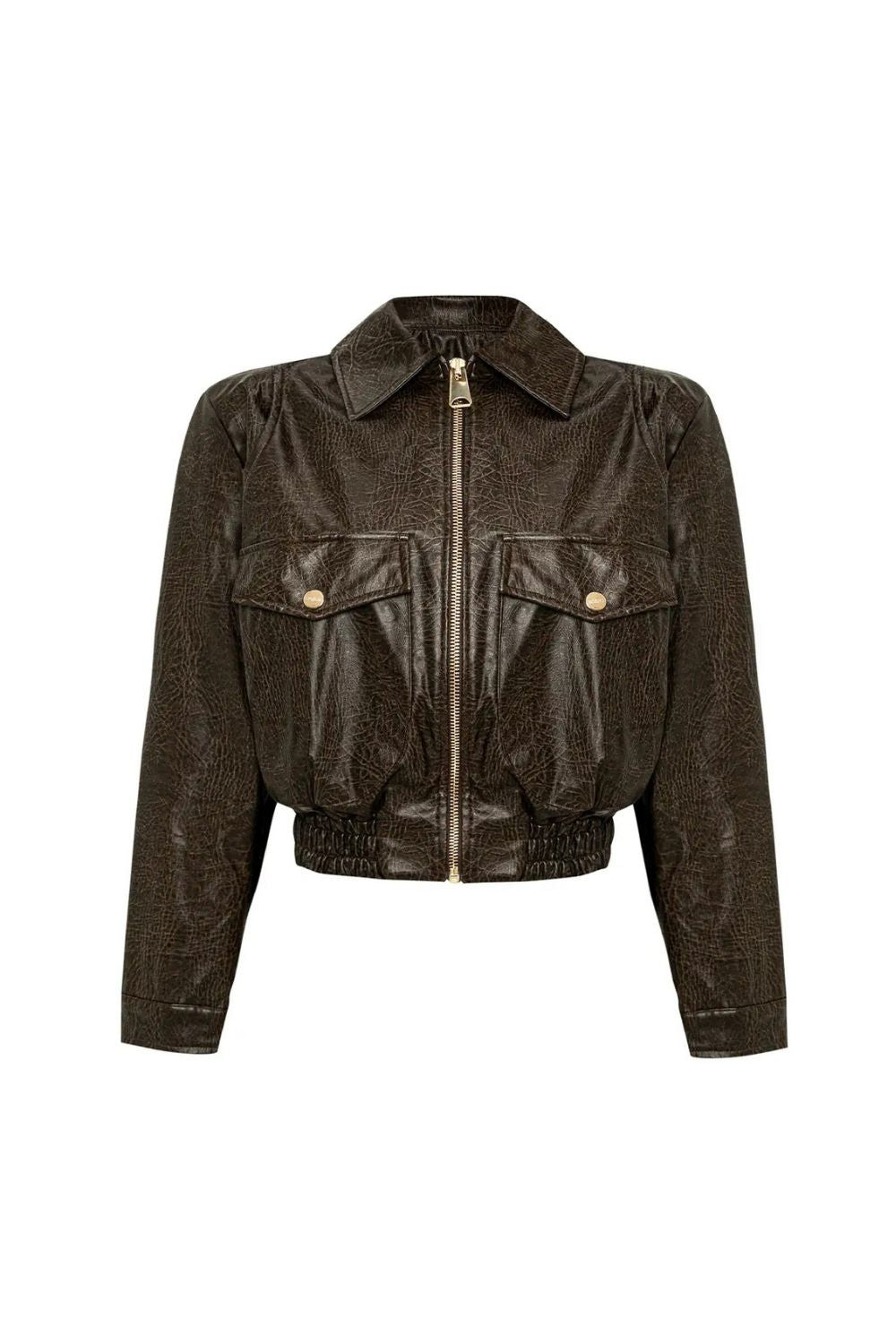 Açıklama: Vatkalı, gold fermuar detaylı vegan deri ceket