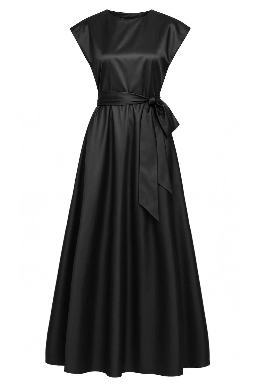 Kimono Kol Detaylı Maxi Boy Antrasit Tafta Şık Elbise