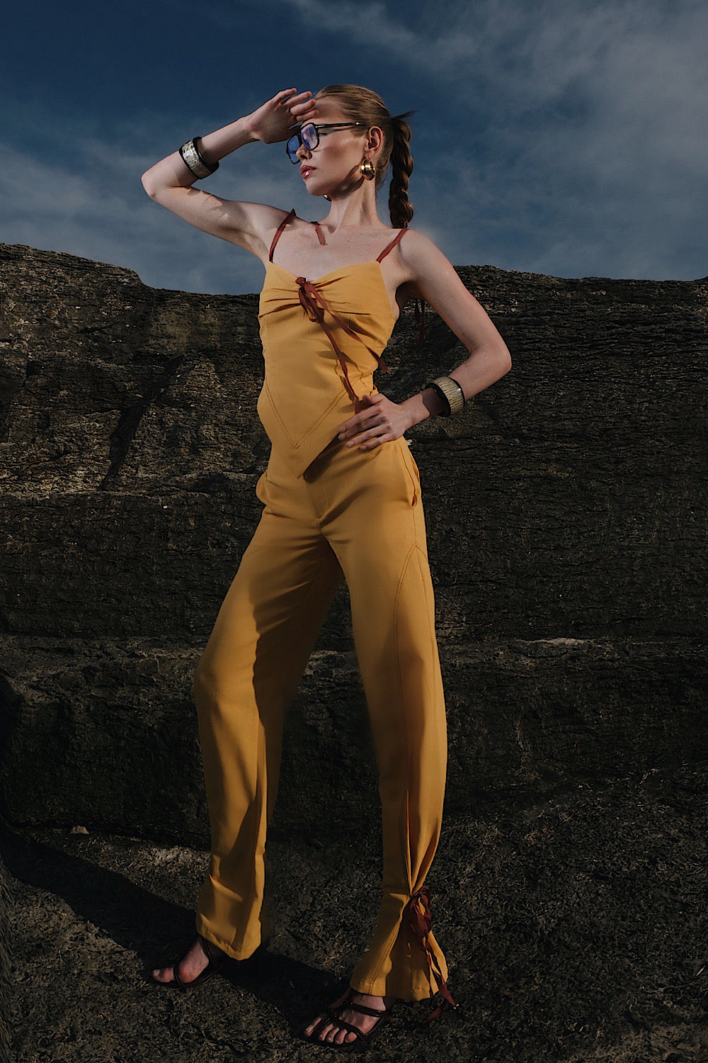 - Ürün Özellikleri: Göğüs pili detaylı asimetrik sırtı bağlamalı ,kurdele detaylı bluz, yüksek bel paçası bağlama detaylı düz kesim pantolon. Set olarak satılmaktadır.