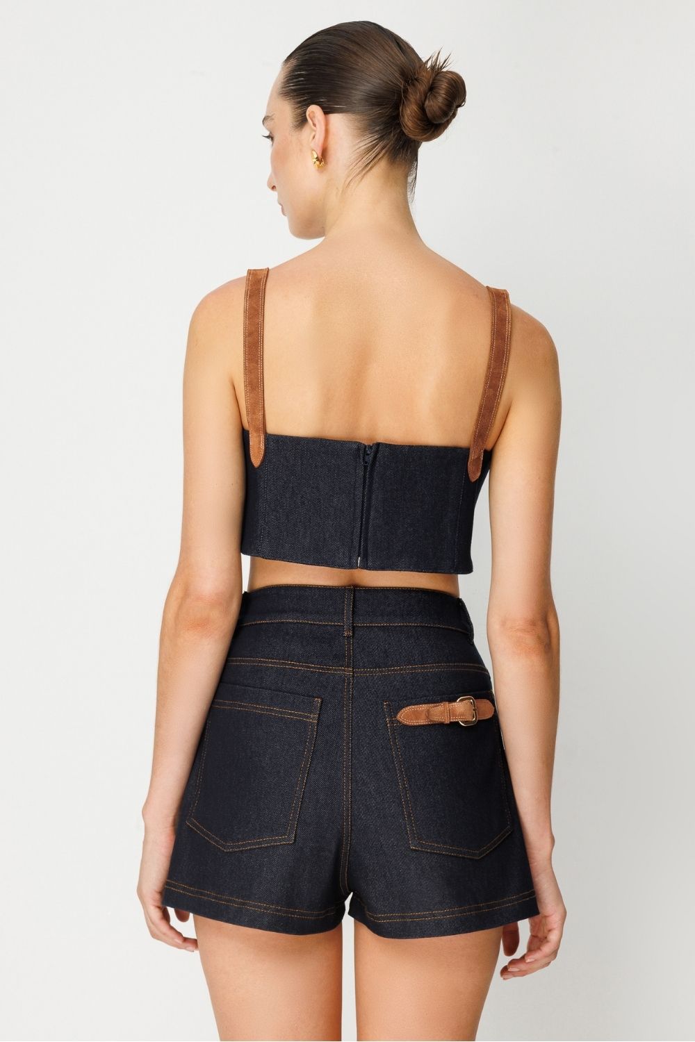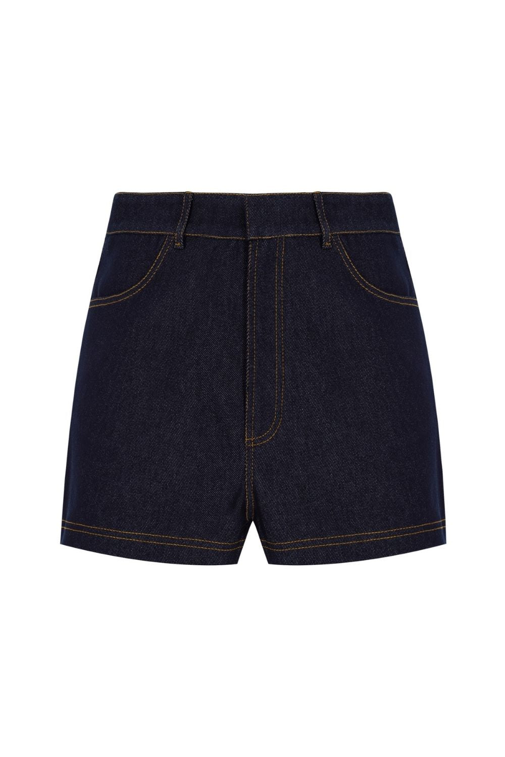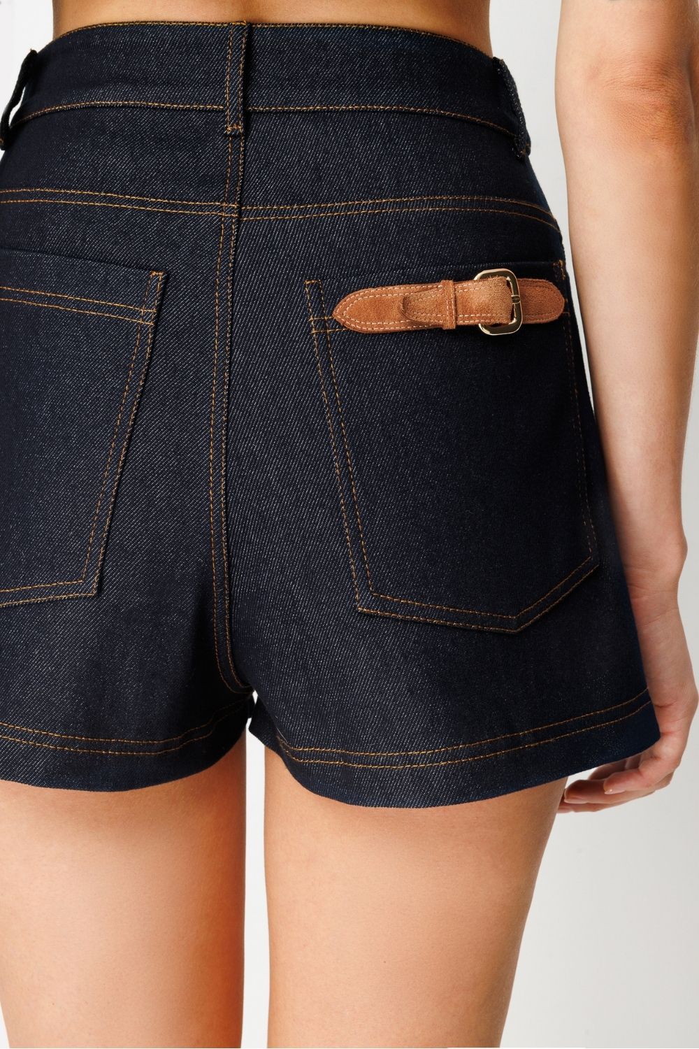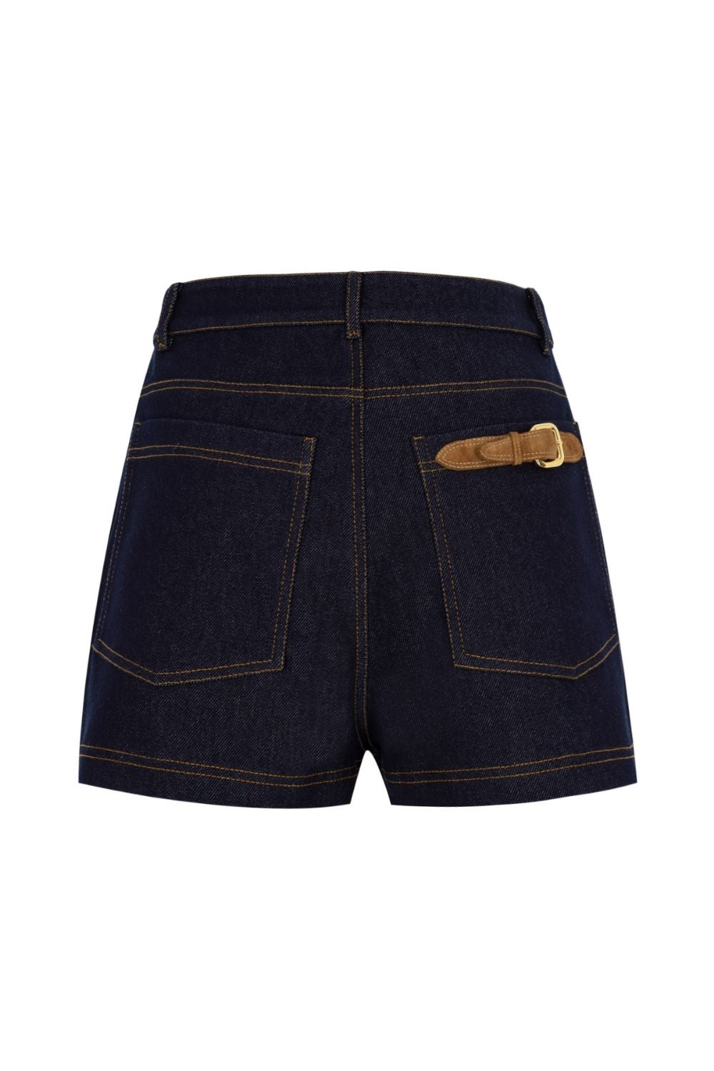 Süet Kemar Detaylı No9 Denim Mini Şort
