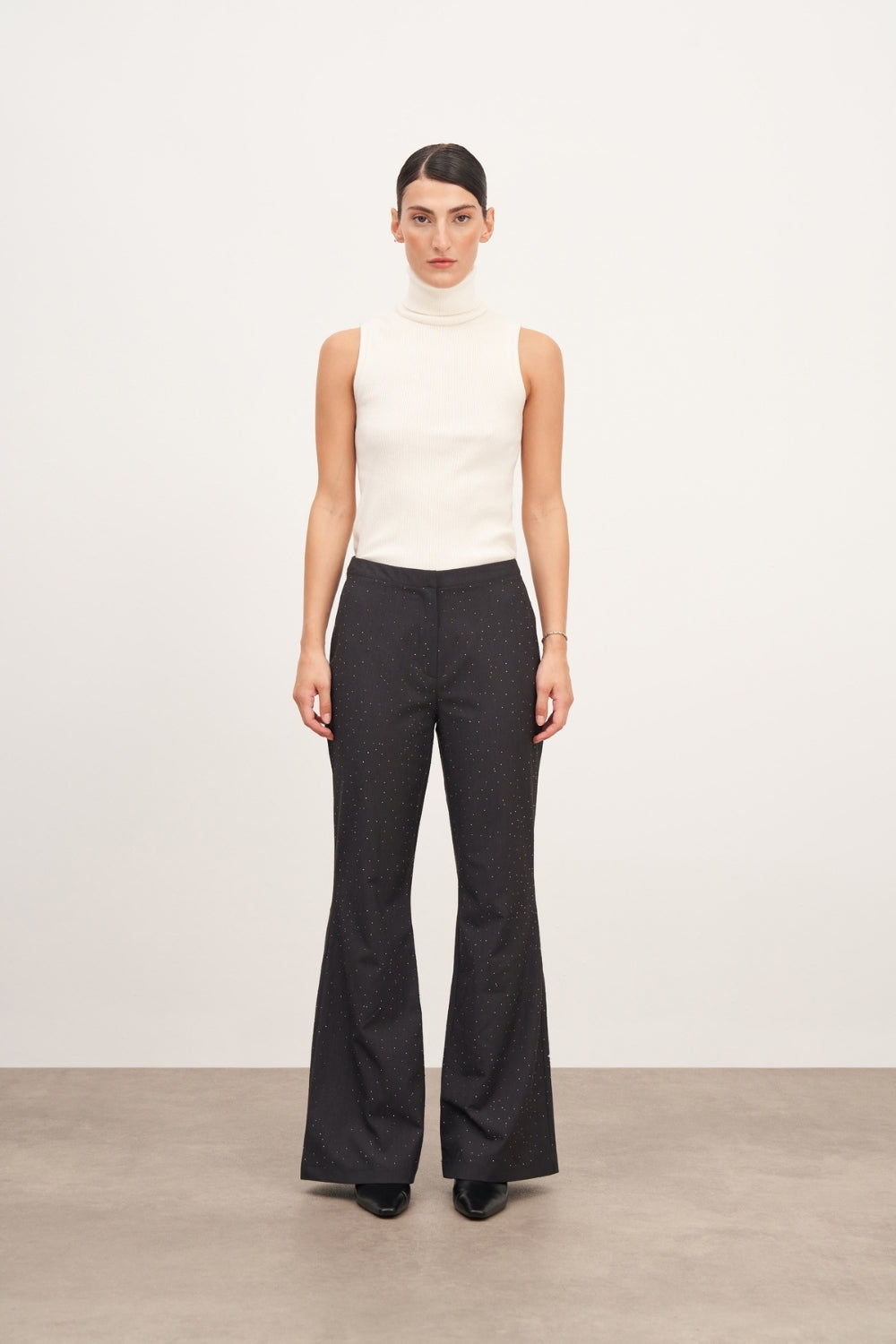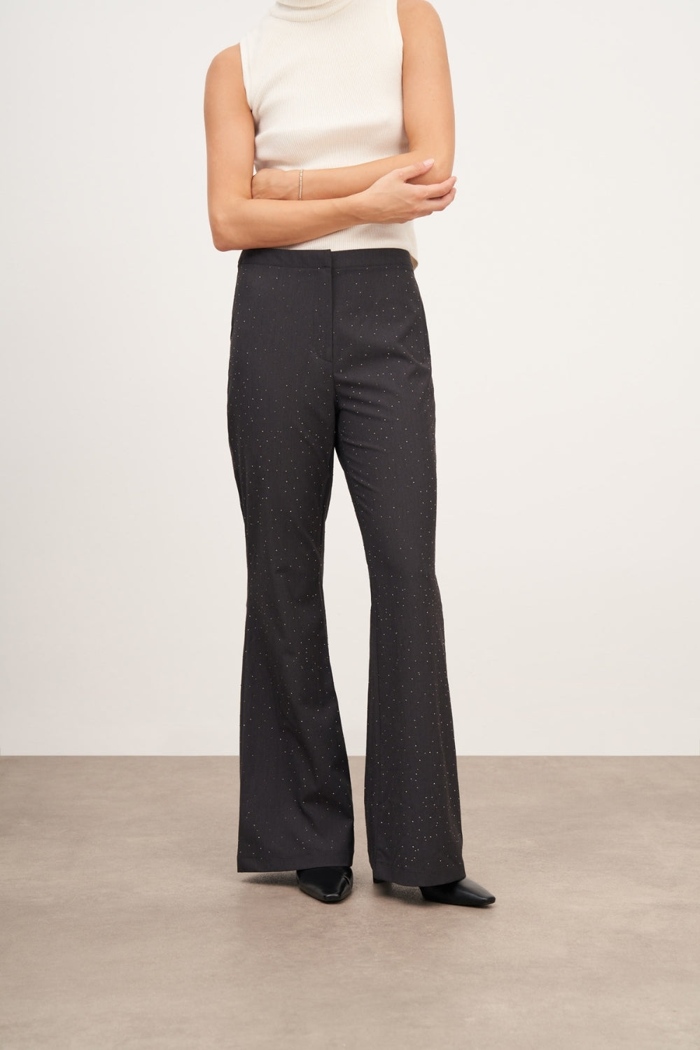 Füme Hotfix Detaylı Flare Kesim Pantolon