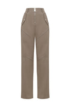 Önden açılır fermuarlı yanlarda süs kapak detaylı uzun rahat pantolon