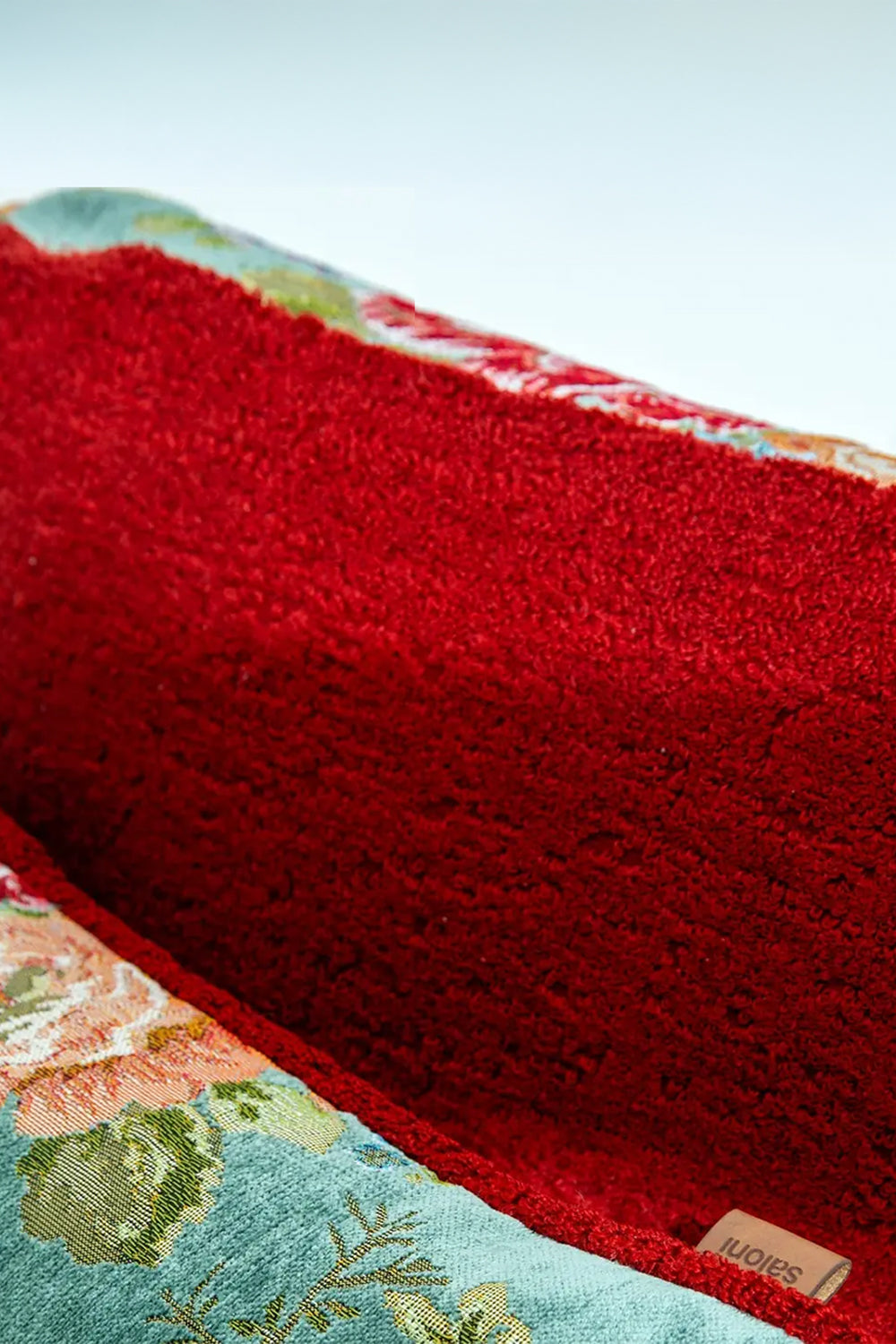 • Renk: Derin kırmızı, floral kenar detaylarıyla tamamlanmıştır