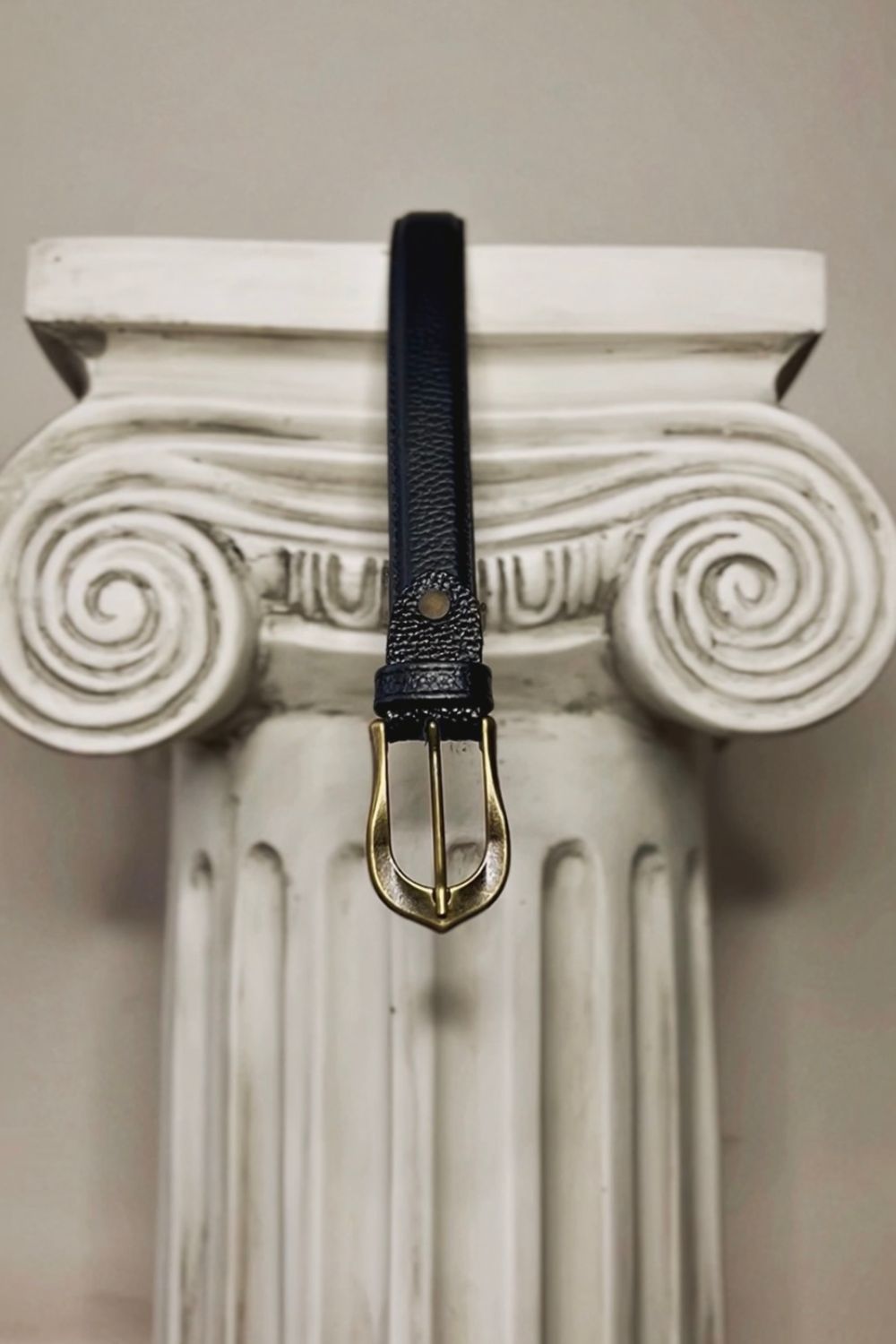Doğal dokusu ve vintage havasıyla öne çıkan bu 2.5 cm genişliğindeki siyah deri kemer, hakiki dokulu (floater) dana derisinden el işçiliğiyle üretilmiştir. 3 katmanlı yapısı sayesinde hem sağlam hem de konforludur. Yumuşak gri deri astarı gün boyu rahatlık sağlarken, antik pirinç tokası nostaljik ve karakterli bir dokunuş katar.
