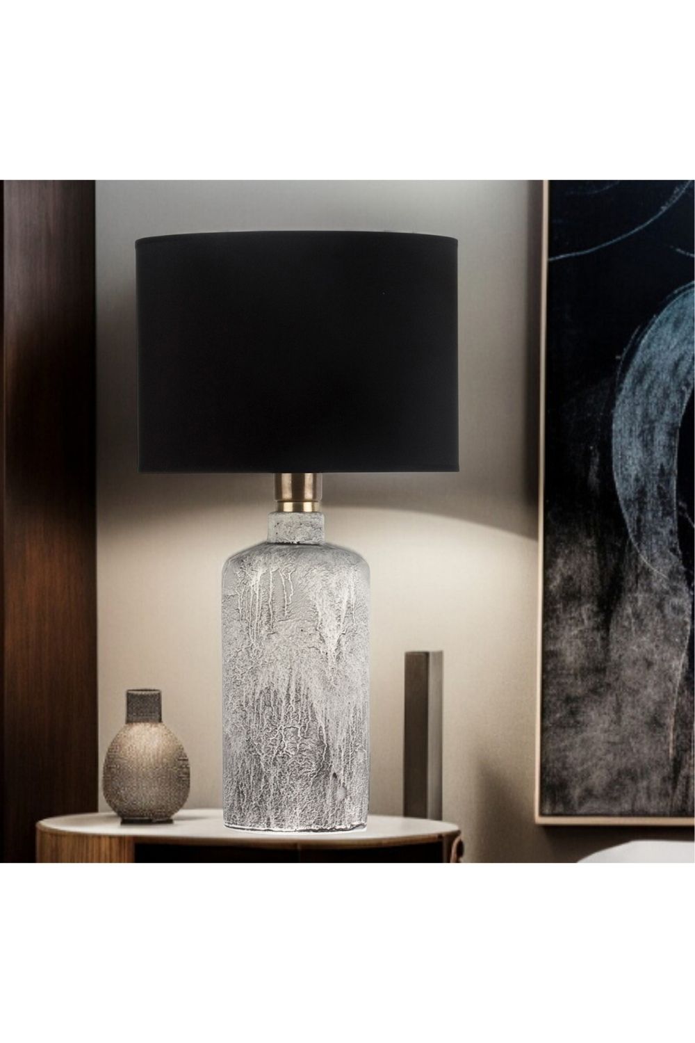 Oslo Doğal Taş Görünümlü Seramik Abajur – Siyah Başlık