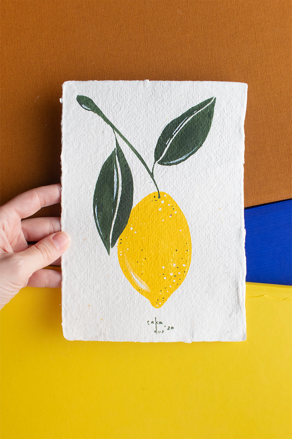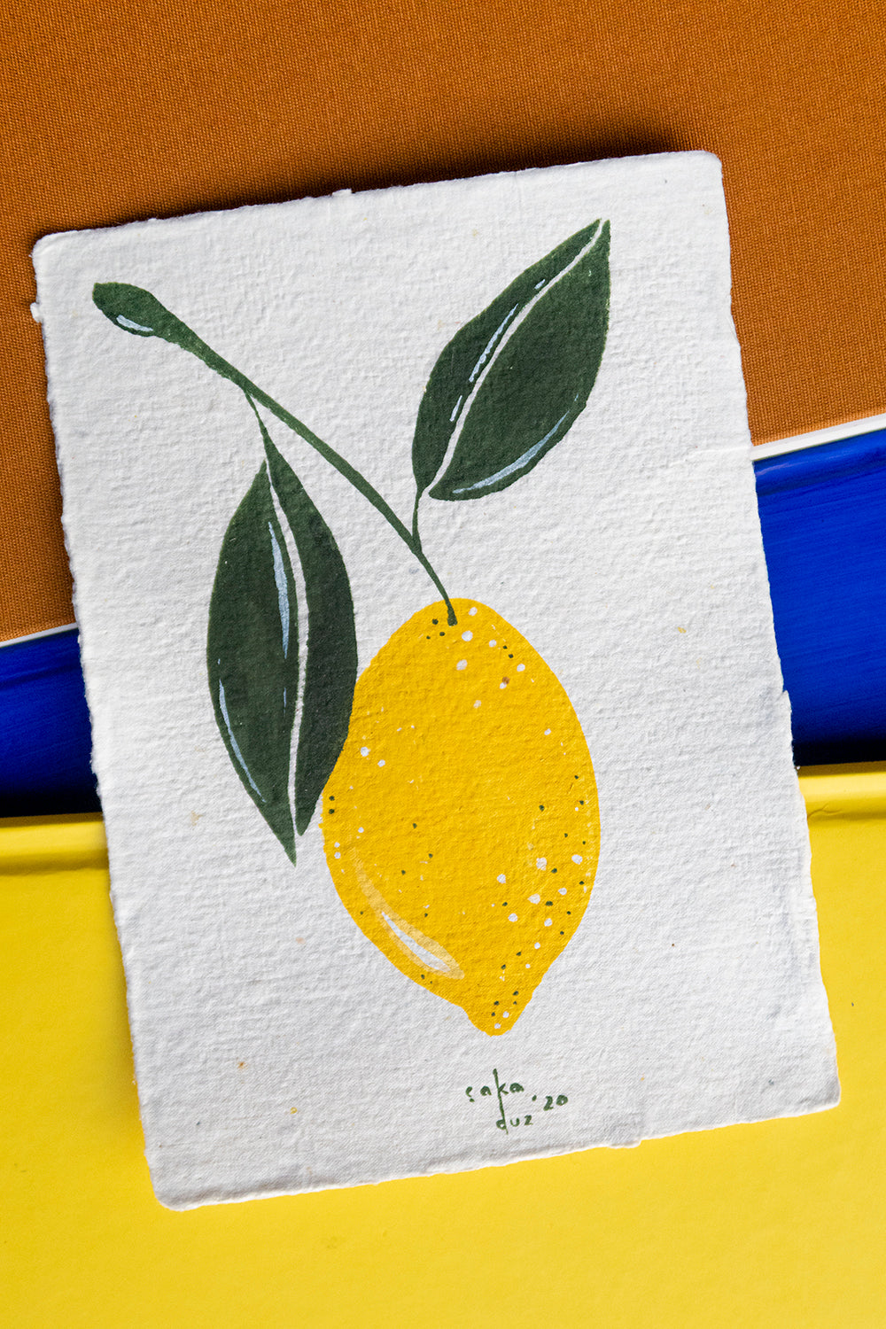 Bu resim kendi ürettiğimiz geri dönüştürülmüş el yapımı kağıt üzerine yapılmıştır. Sürdürülebilir yaratıcılığa olan bağlılığımızı yansıtan çevre dostu bir sanat eseridir.