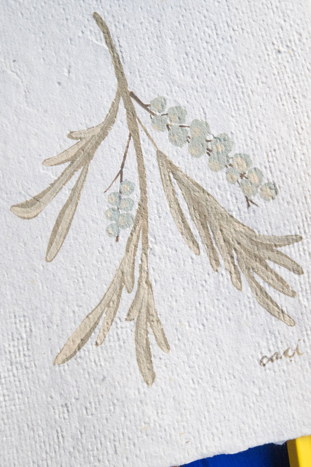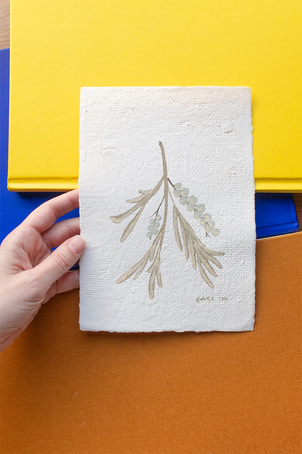 Bu resim kendi ürettiğimiz geri dönüştürülmüş el yapımı kağıt üzerine yapılmıştır. Sürdürülebilir yaratıcılığa olan bağlılığımızı yansıtan çevre dostu bir sanat eseridir.